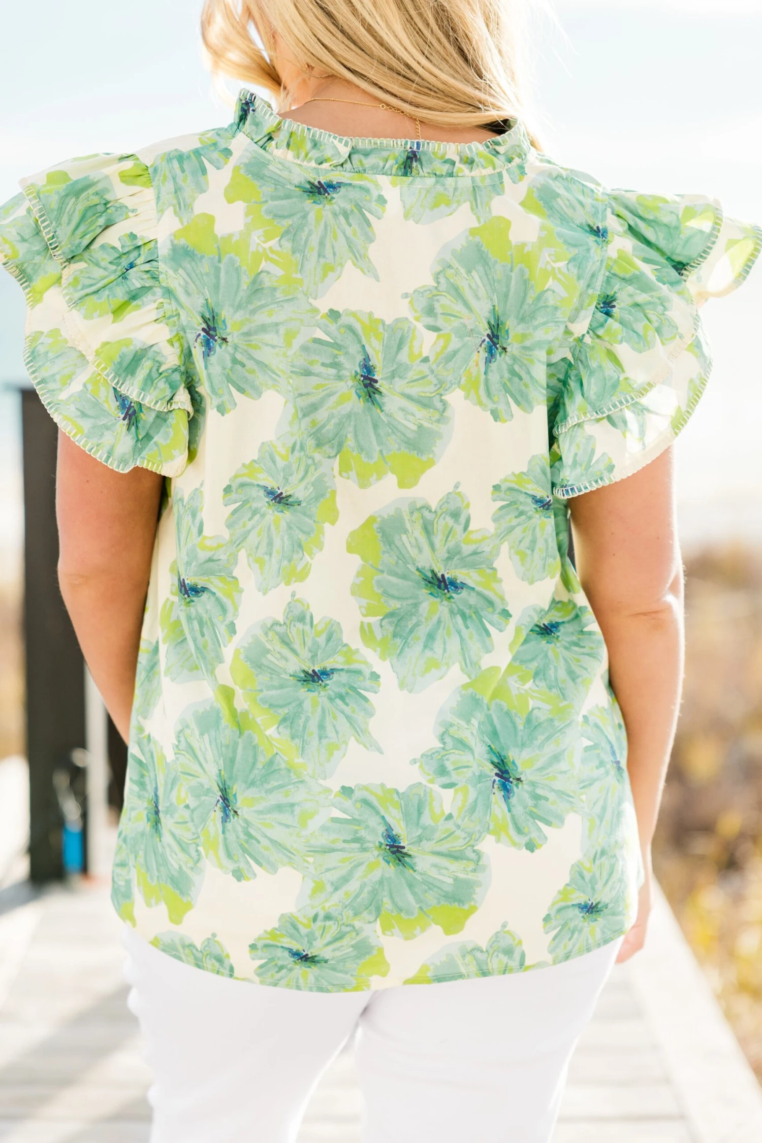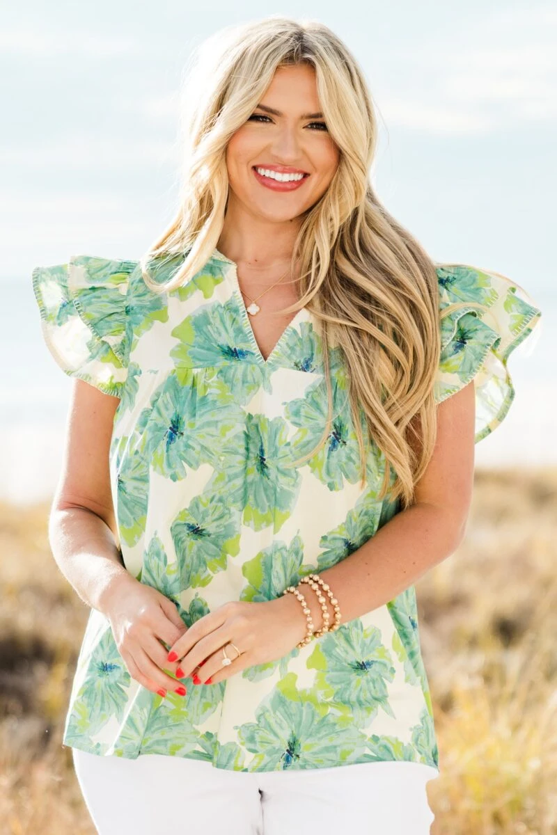Stay chic and comfortable with this top! Featuring flutter sleeves and a vibrant watercolor floral print, this v-neckline top is perfect for any outing! A fun and playful addition to your wardrobe!