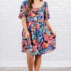 We are so in love with this mesmerizing dress! It offers a delightful fusion of style and comfort! Adorned with a beautiful floral pattern, this dress features charming bubble sleeves and a figure-flattering smocked back detail! The pretty blue color and adorable waist tie add a touch of sophistication!