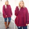 This sweater was made for snuggling! It has the coziest fabric with an over-sized fit to flatter your figure and keep you comfortable all day long! The solid color makes it easy to style, while the chic wine color is perfect for the new season! Pair this sweater with skinnies or leggings for an easy everyday look!