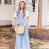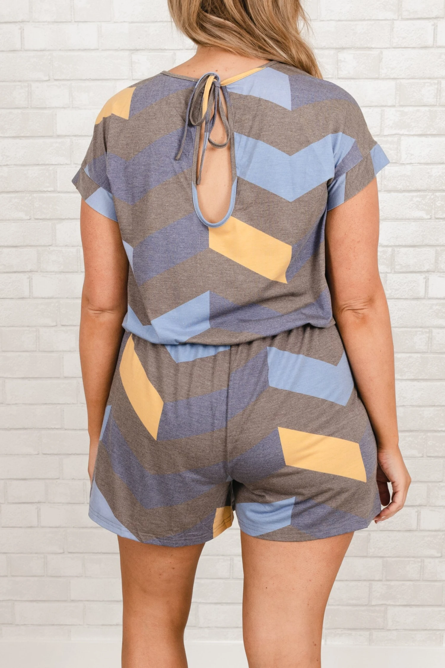 This romper will change the fashion game in your life! It’s incredibly comfortable, easy to wear for every occasion, and has the cutest chevron pattern! Not to mention, the gray blue colors of this romper make it easy to pair with your favorite shoes and accessories! Wear this outfit with sandals or dress it up with wedges!Â