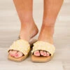 Slip into these sandals for a natural and playful look! Made from woven raffia, these sandals feature fun pearl accents! Perfect for a casual day out, these sandals add a touch of whimsy to any outfit!