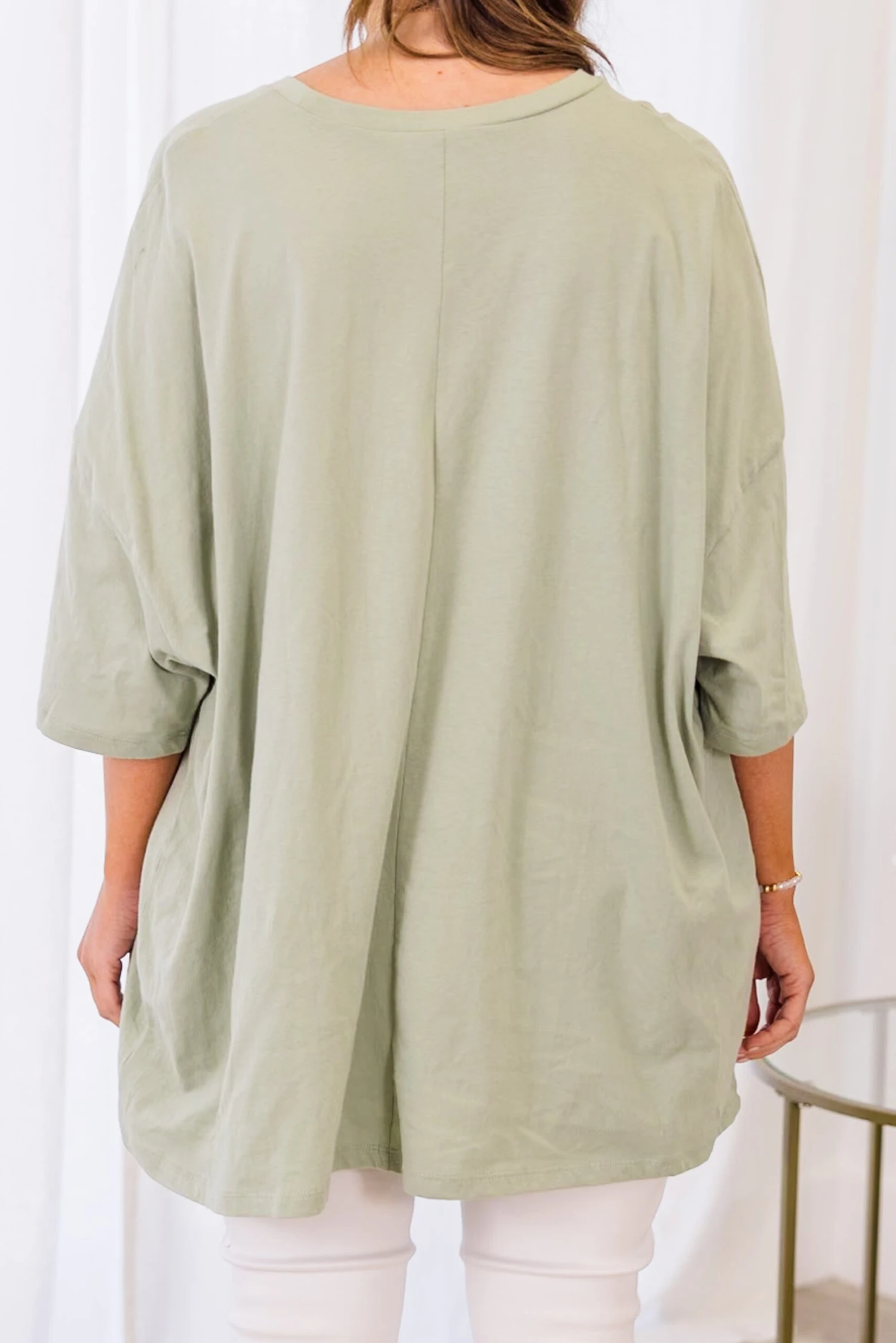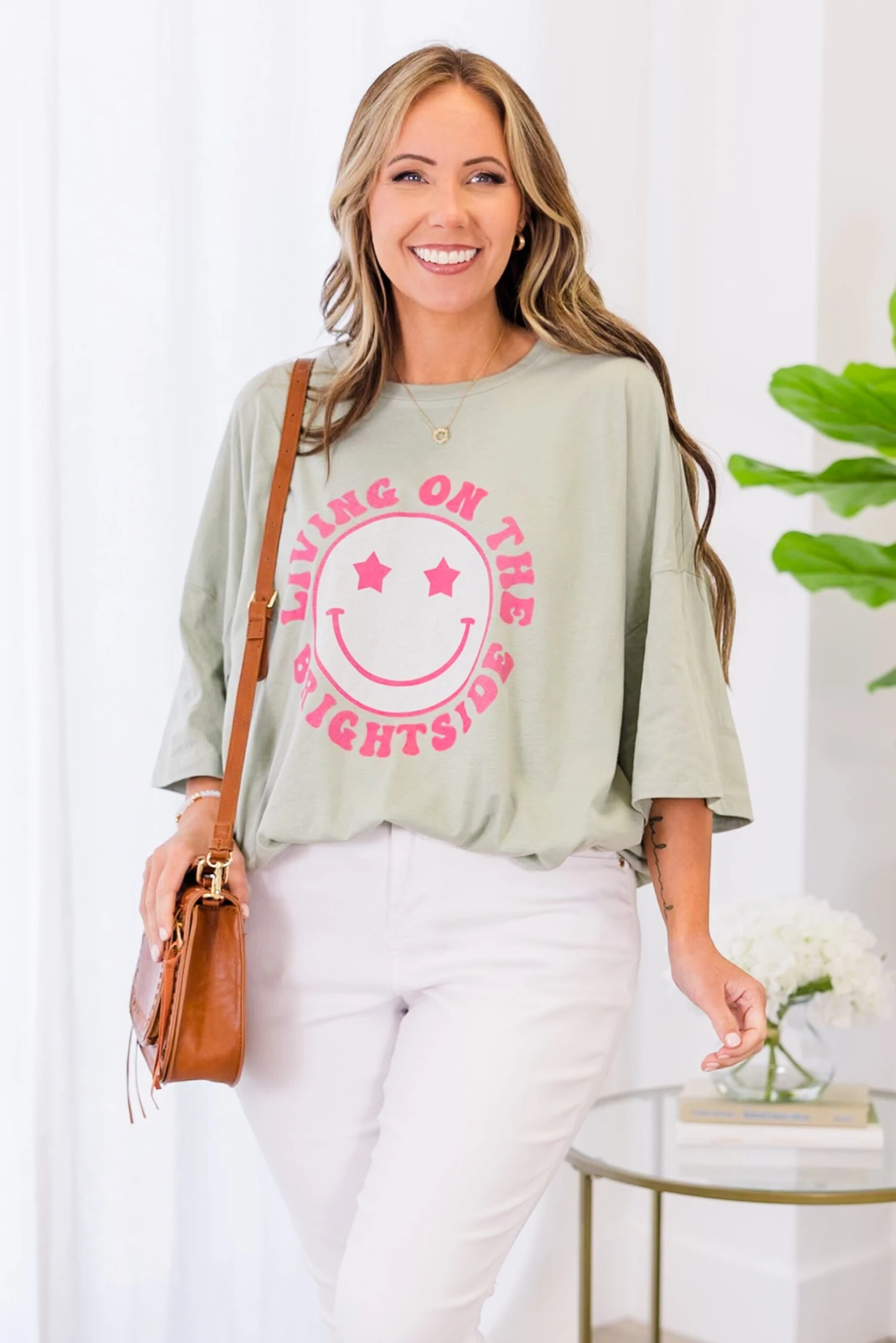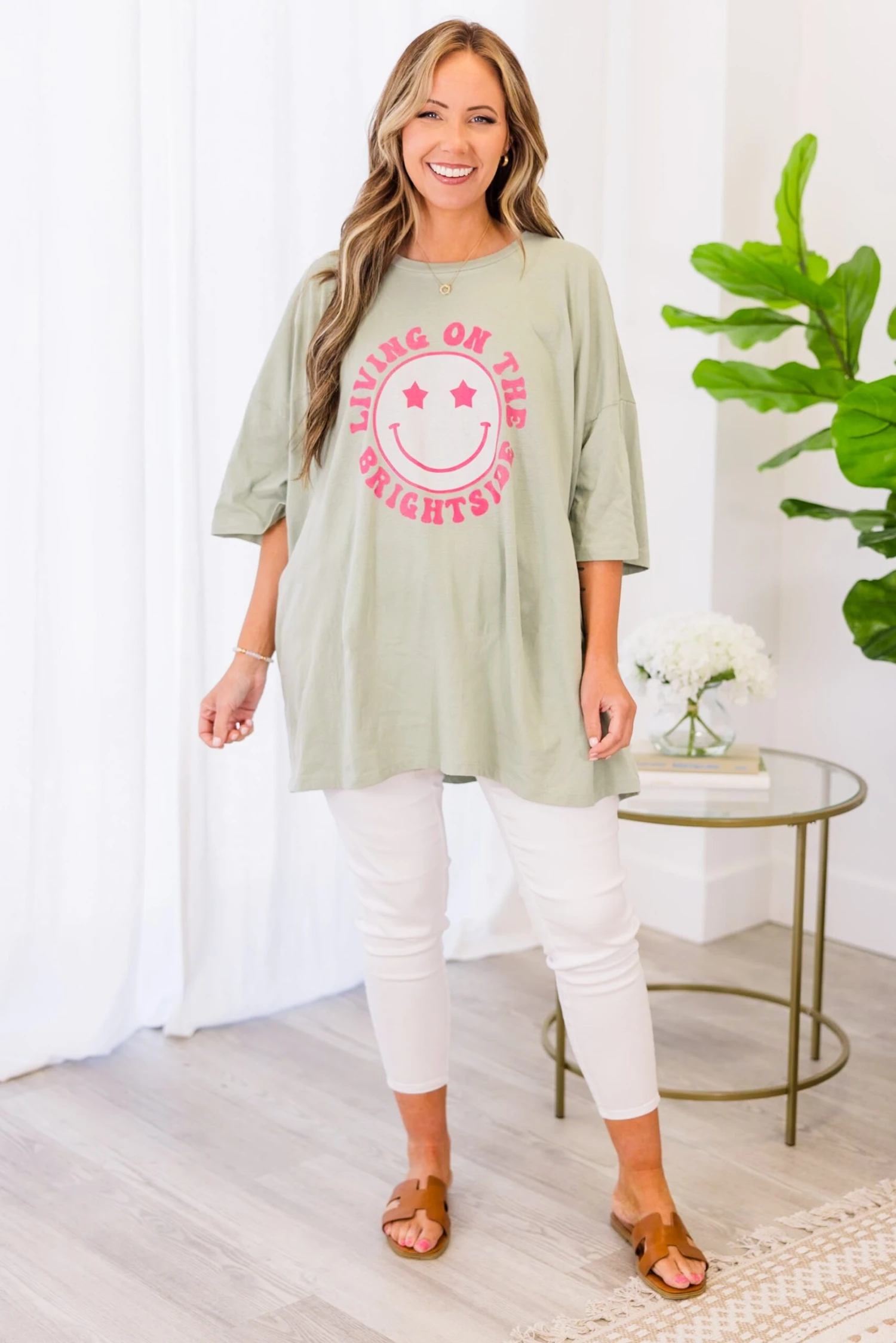 Be bold and make a statement with this FAB tee! Featuring an adorable graphic and oversized fit, this tee is perfect for a casual outing! Let the classic light sage color brighten up your day and your wardrobe!