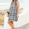 Introducing the Limitless Time Dress in black! With its babydoll silhouette and split v-neck, this dress offers a flattering and comfortable fit! The Aztec print adds a touch of trendiness to any wardrobe! Make a statement with this versatile and stylish dress!