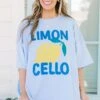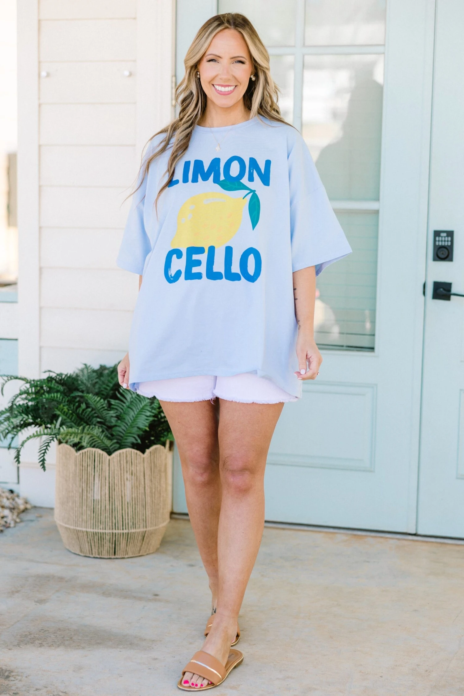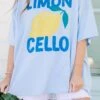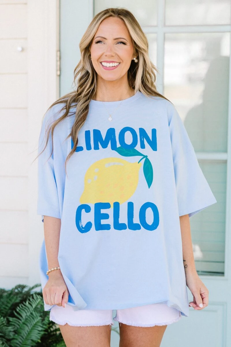 Get ready for summer with this boyfriend tee in ash blue! This oversized tee features a playful limoncello graphic, adding a burst of fun to any outfit! Stay cool and stylish with this quirky and comfortable tee!