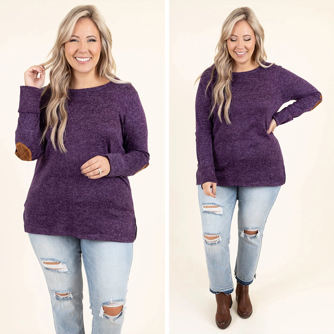 You’ll love this top more than just a little! It has a solid purple color you can dress up or down and style with everything in your wardrobe! It’s comfortable, figure-flattering, with the cutest elbow patch details and is perfect for the season! Pair this top with skinnies and a bold necklace for an effortlessly chic outfit!Â
