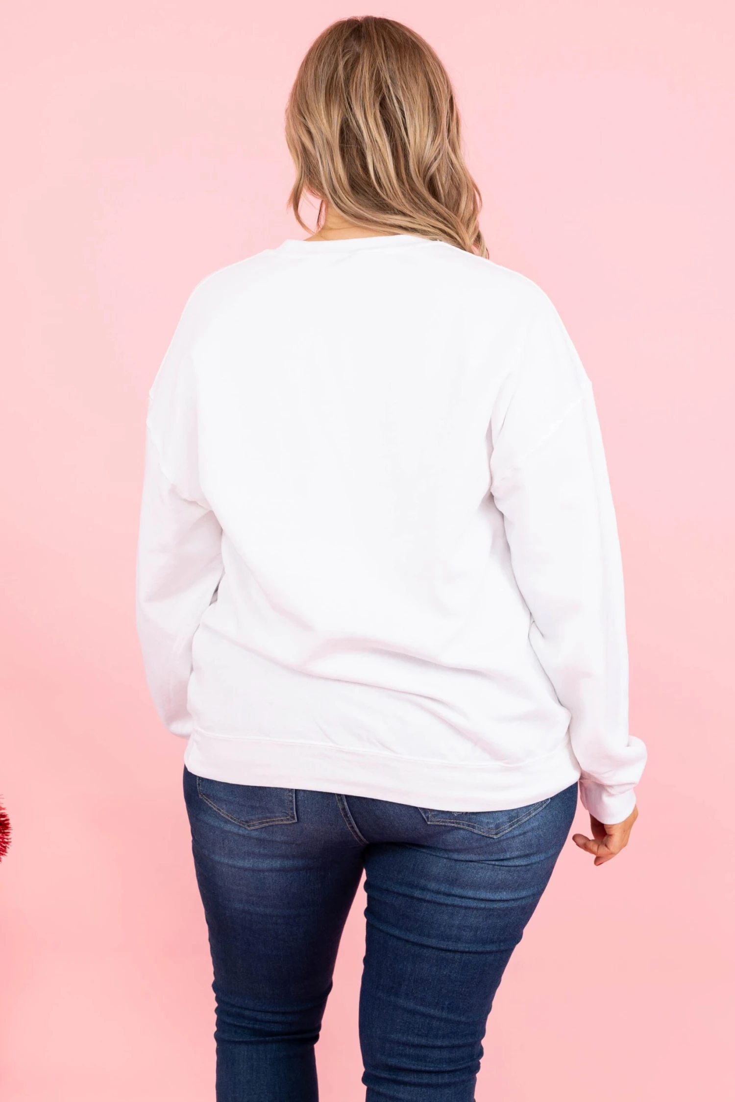 We simply LOVE this adorable sweatshirt! It has a classic white color with a simple, cute graphic that is super sweet! The classic sweatshirt fit is perfect for pairing with skinnies or leggings for a classic casual look!