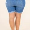 We are always livin’ for the party in these shorts! The Bermuda length is so flattering and the blue color is perfect to pair with any top you want! These have a light distressing for a super trendy look and a rolled hem! Style them with your favorite top and shoes for a perfect look!