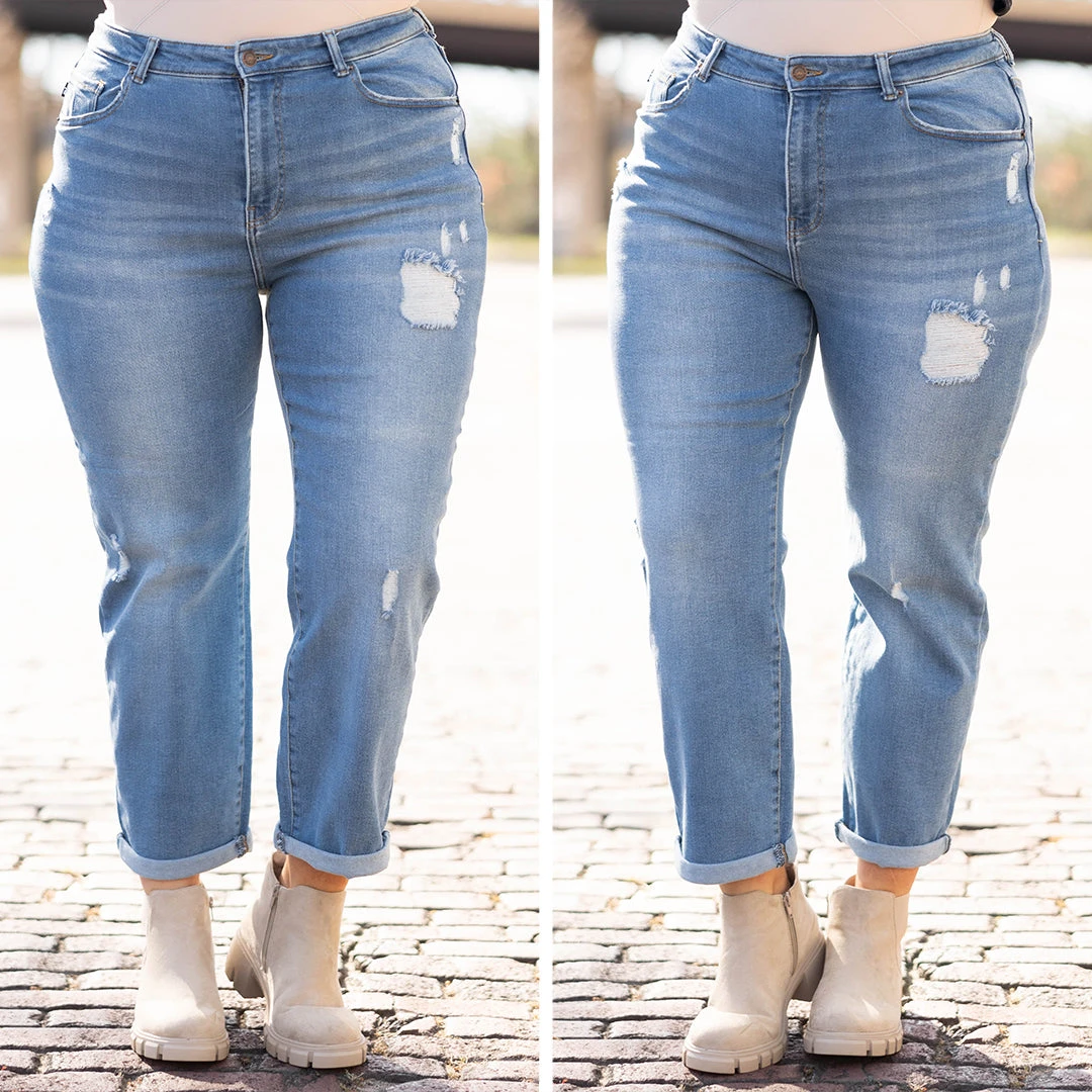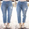 You’ll be living for every moment on these gorgeous jeans! They have a trendy dark wash with a fun distressed design that is super sweet! The stretchy, figure flattering fit is great for a day out on the town or a night out with the girls! Style these jeans with a cute top and cardi for a classy casual look!