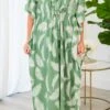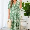 Soak up some sun in this beauty! This gorgeous green maxi dress features a delicate floral leaf pattern and tassel ties, making it the perfect choice for your beach or resort trip! Stay stylish and comfortable with this charming dress!