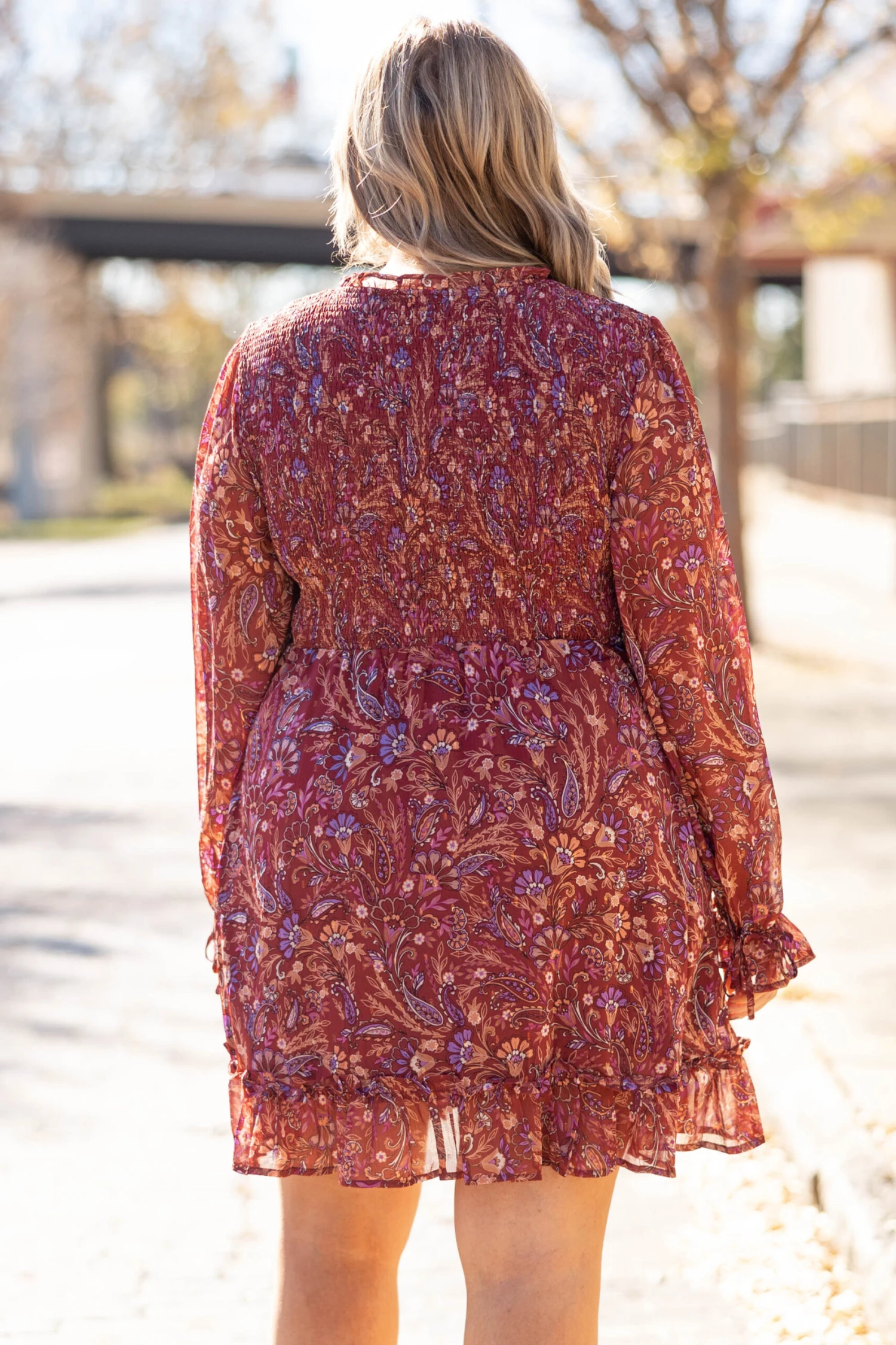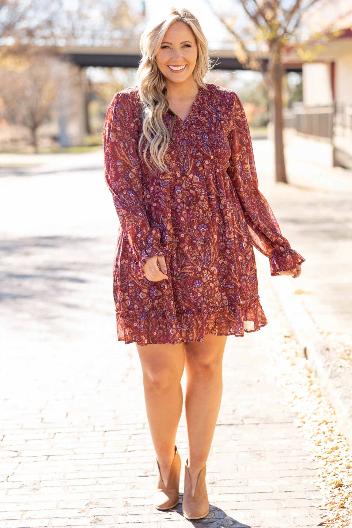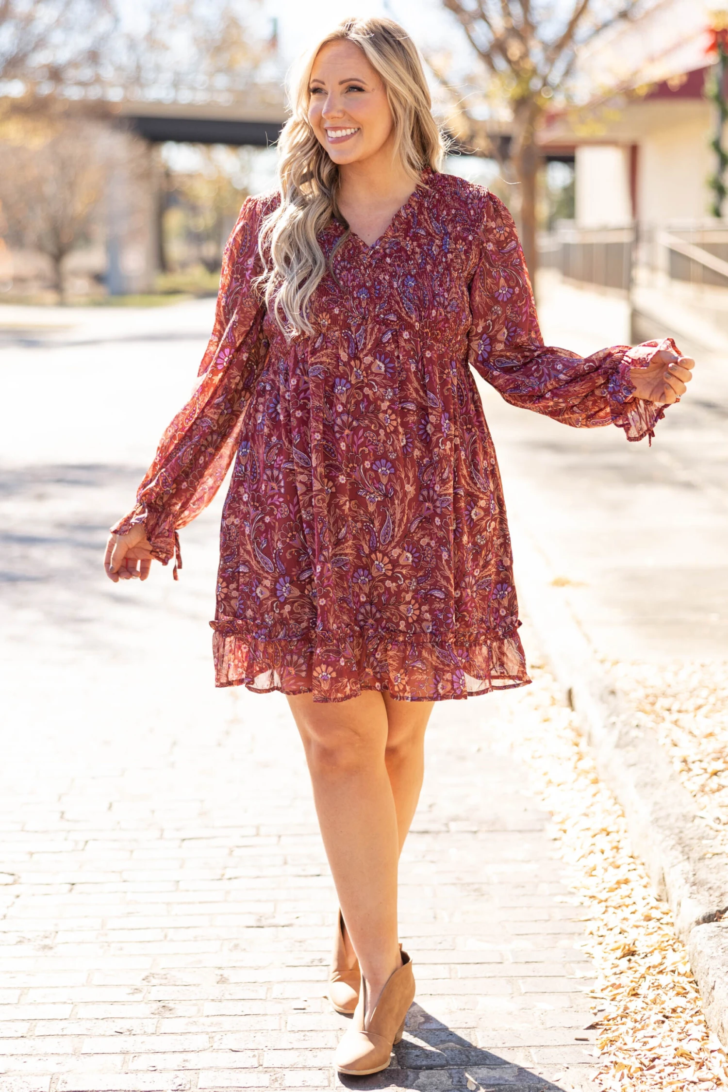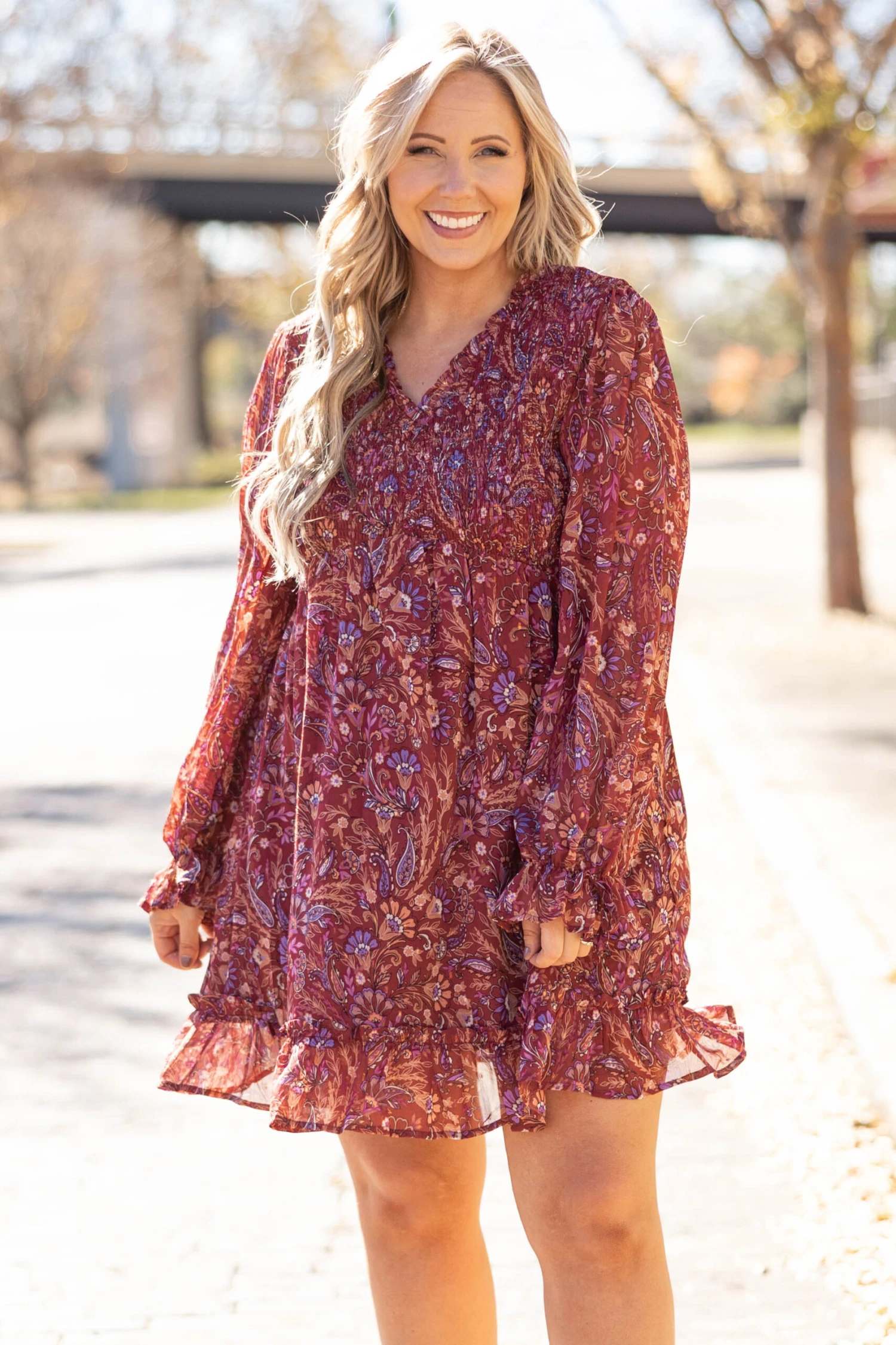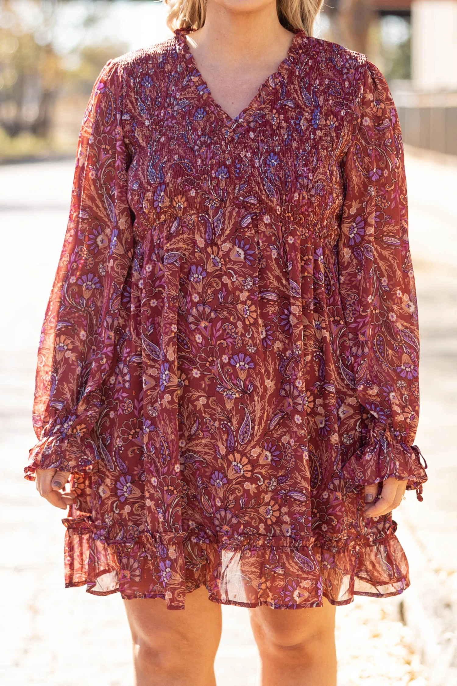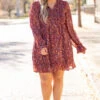 This dress is a total dream! It has a beautiful burgundy color with a trendy floral pattern that is a season favorite! The babydoll design and flirty length is perfect for a brunch date with the girls! Pair this beauty with some cute accessories and booties for a classy chic look!