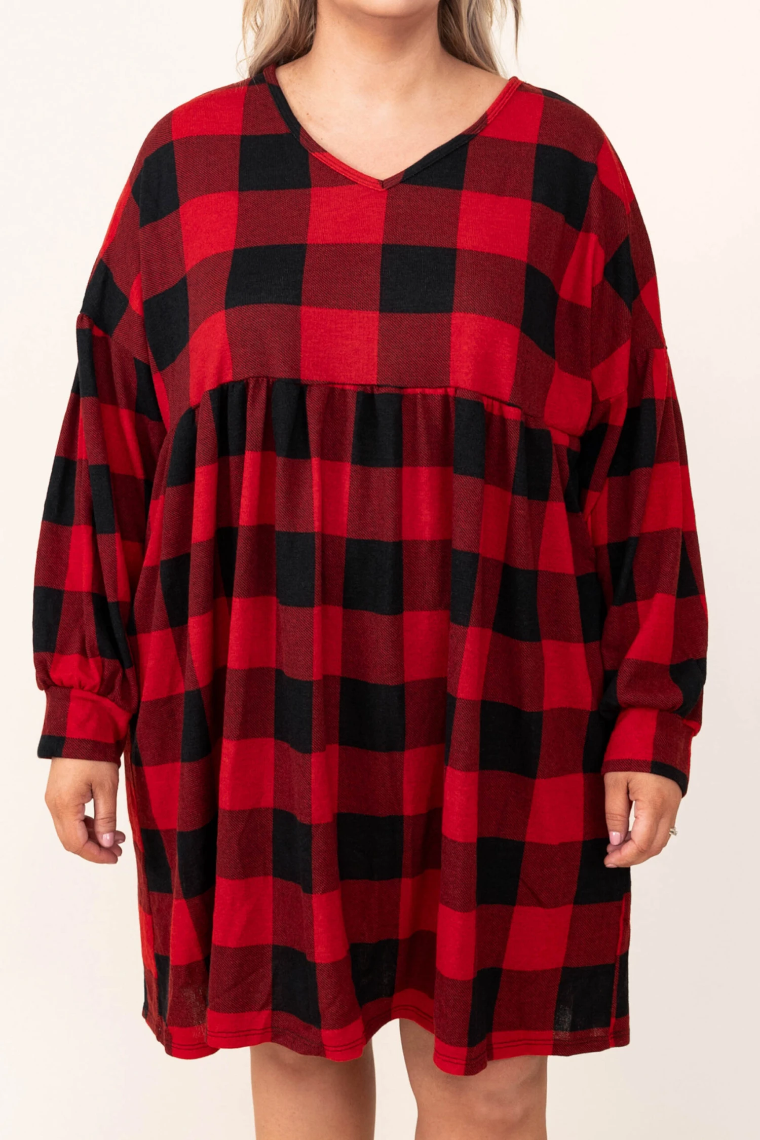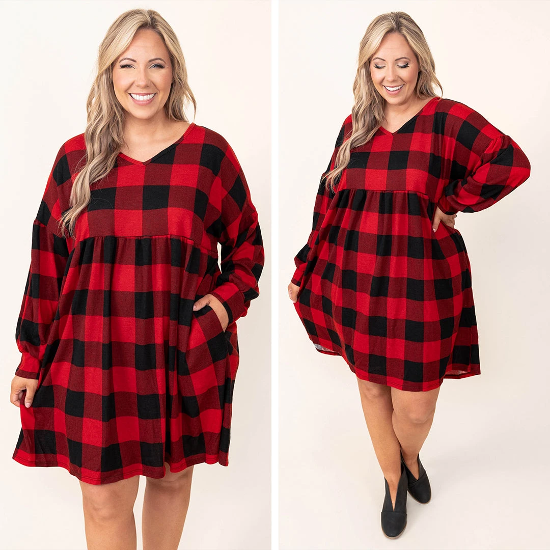 We are right in the midst of fall and this dress is the perfect addition to your wardrobe! This dress has a bold plaid pattern perfect for the new season with a trendy black & red color you can dress up or down for every occasion! It’s comfortable for all-day wear and has a babydoll fit for all body types! Pair with booties and a bold accessory for your next event!