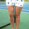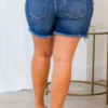 Take a closer look at these stylish shorts in a medium wash! Their frayed hemline adds a touch of edge to any outfit! Stay comfortable and trendy with these versatile shorts!