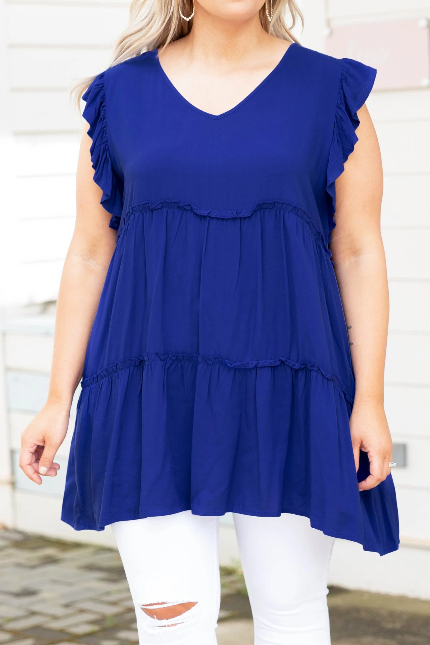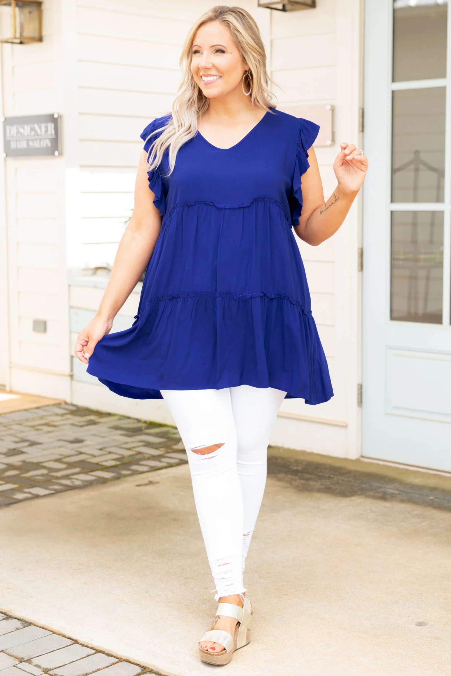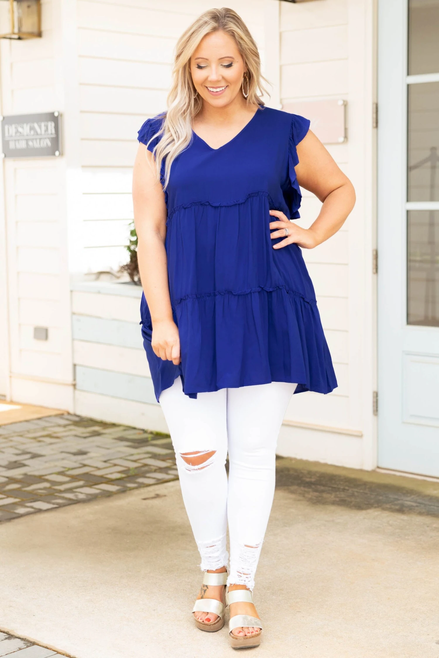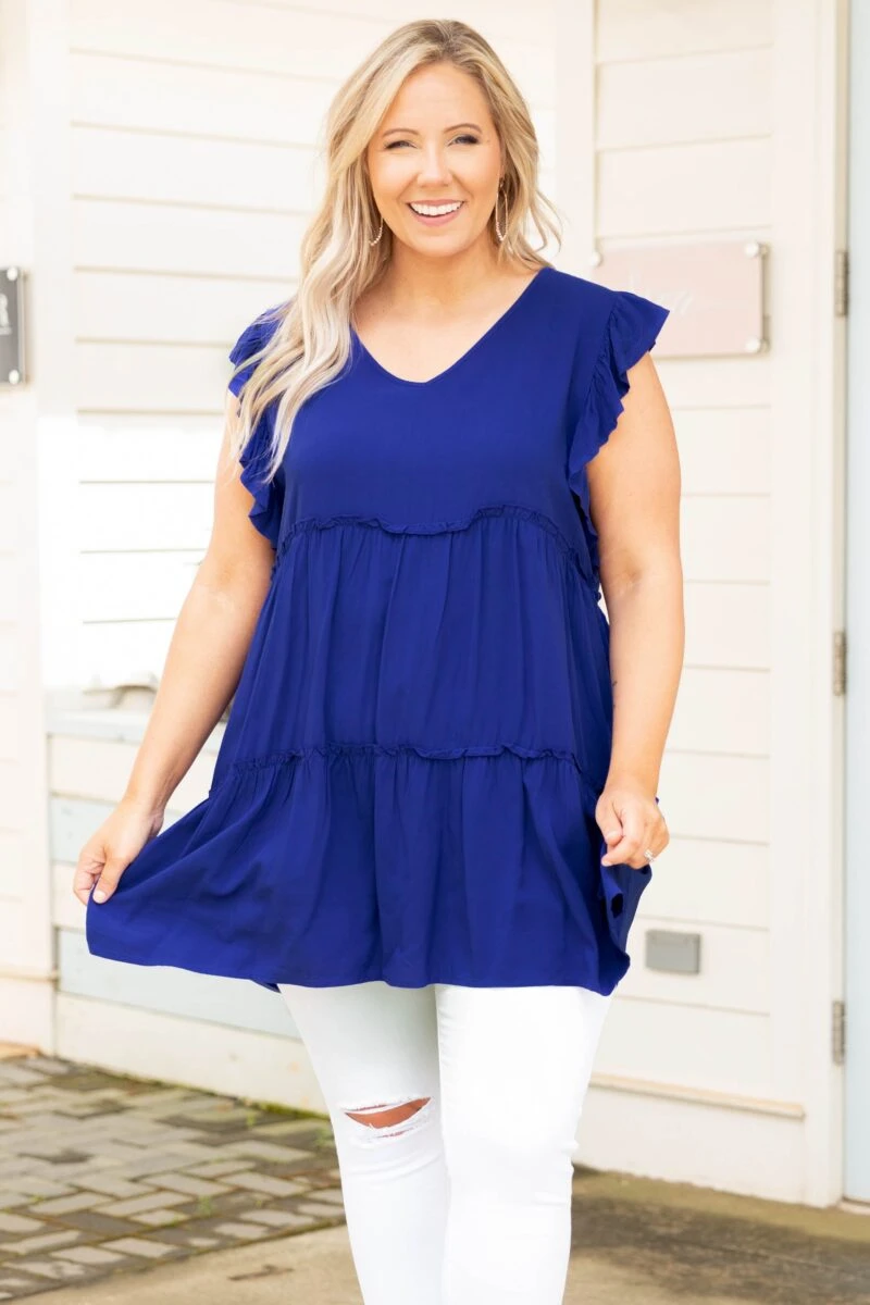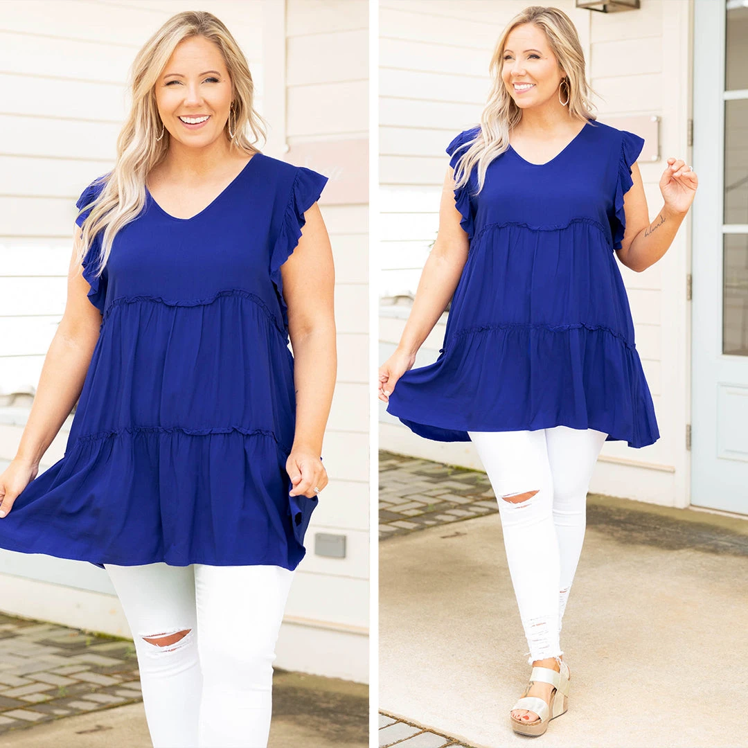 You will be trending in this top! The blue color is so cute and the tiered style is absolutely gorgeous on everyone! We love it with some white skinnies and wedges for a look that will catch everyone’s eyes!