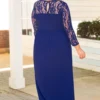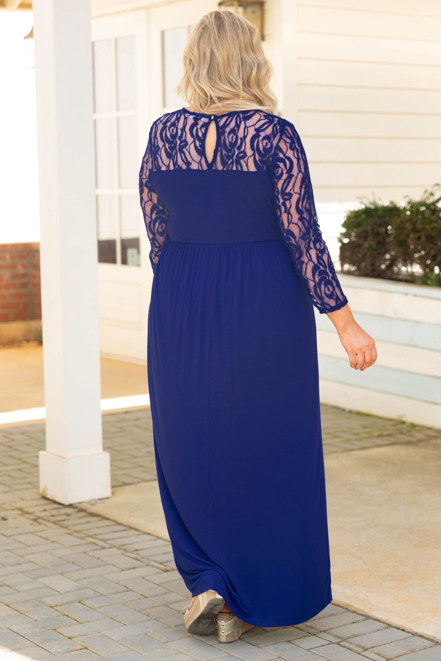 Look oh so elegant in this beautiful dress! This dress has a solid royal color you can style with your favorite shoes and accessories! It’s comfortable for all day wear, has a figure-flattering fit, and features the prettiest lace sleeves! Style this dress with heels or wedges for your next event!Â