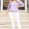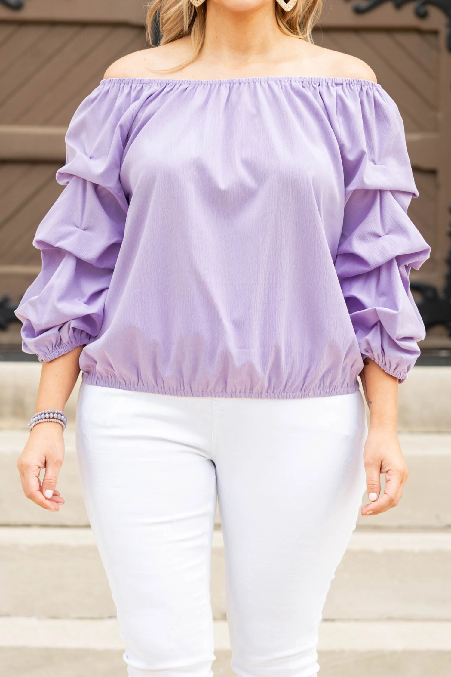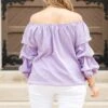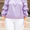 If your are looking for a new fave top, look no further! This top has a dazzling lavender color with a sweet off shoulder design that is a must-have for the season! The fun sleeves and flattering fit are perfect for a date night or a day out on the town! Style this top with some white denim and heels for an unforgettable chic look!