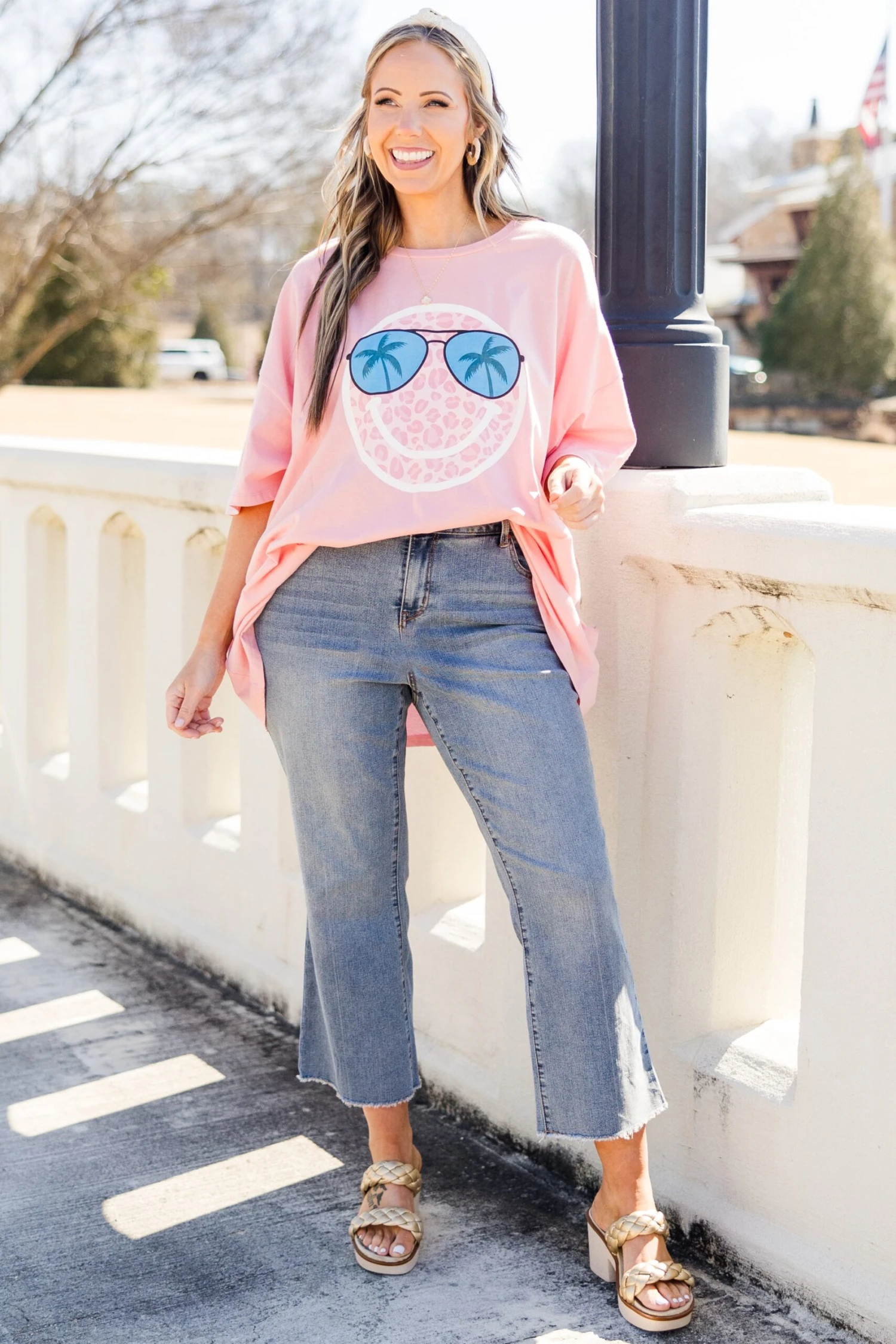 Lookout Summer, here comes your new fave tee! The oversize fit is not only trendy, but also comfortable for all day wear! The dark pink color and adorable graphic adds a touch of playfulness, making this shirt perfect for casual outfits! Pair it with denim or leggings for a chic and effortless look!