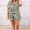 Loosen up and relax in this cute romper! This romper has a cool camo pattern with muted colors that are perfect for the season! It’s comfortable for all-day wear, has a figure-flattering tied waistline, and even features pockets! Style this romper with sneakers or booties for an easy everyday look!