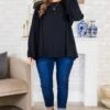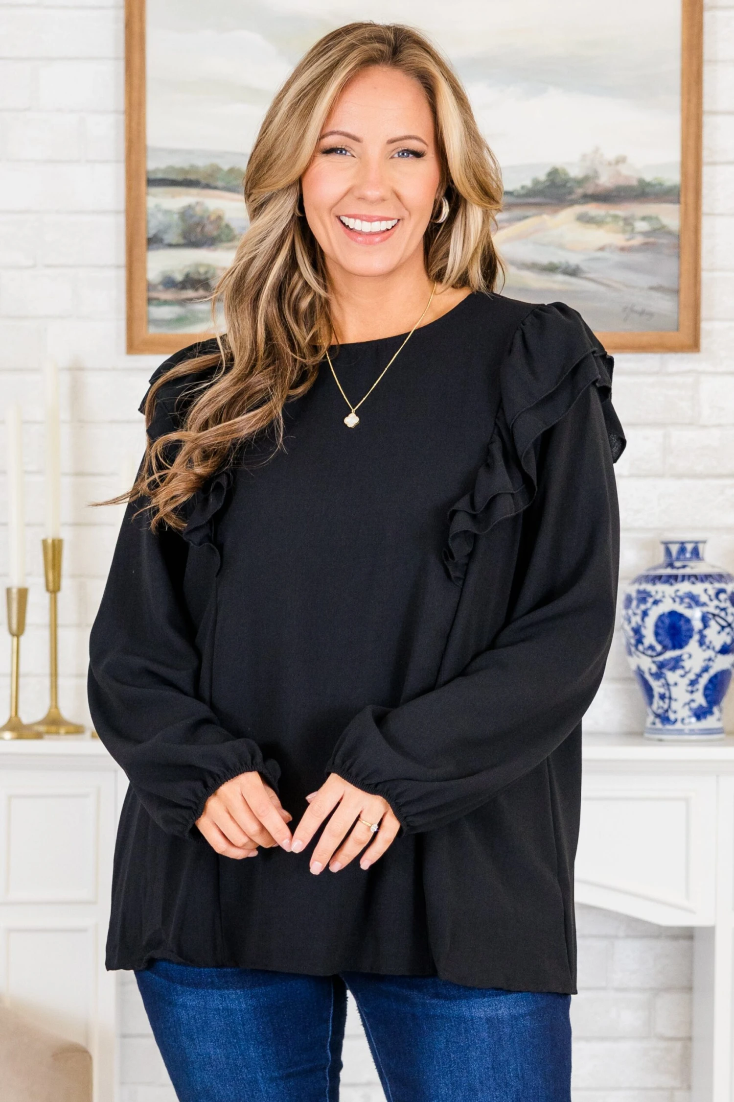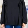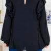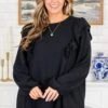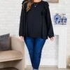 Get lost in style with this top in black! This long-sleeve top features playful ruffled flutter sleeves and a flattering scoop-neckline, perfect for any occasion! The keyhole button closure adds an extra touch of charm! Stay chic and comfortable in this must-have piece!