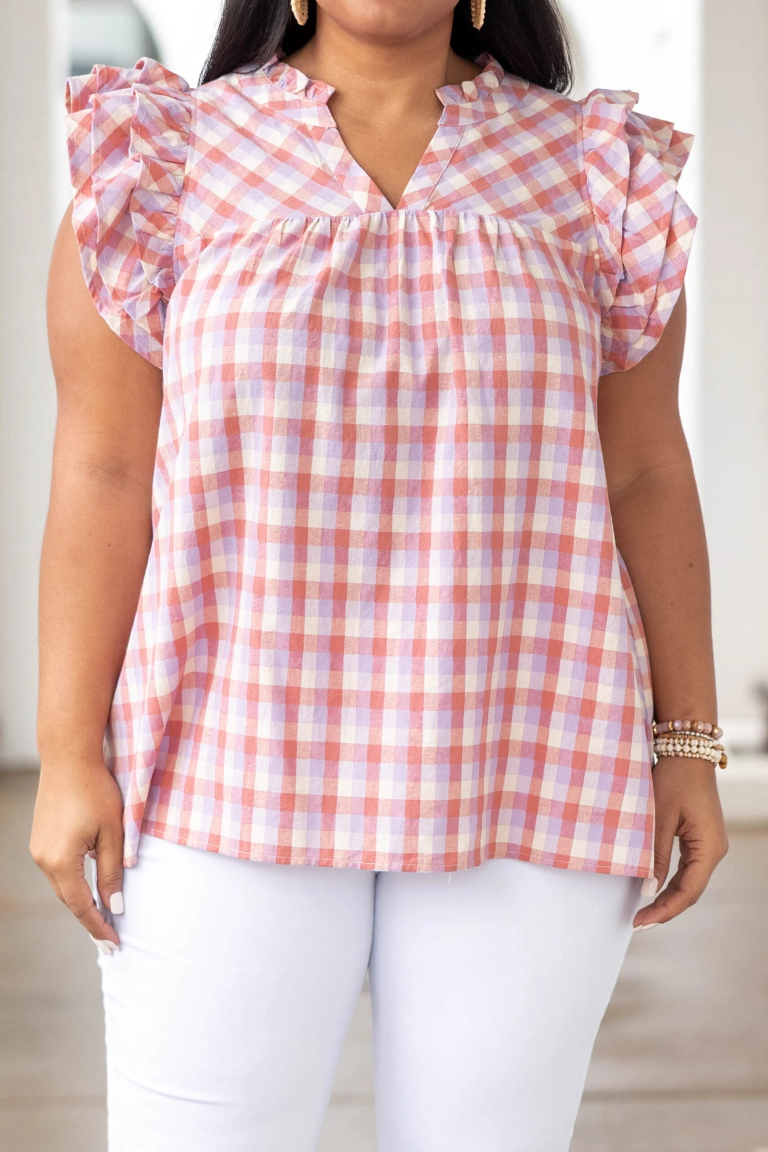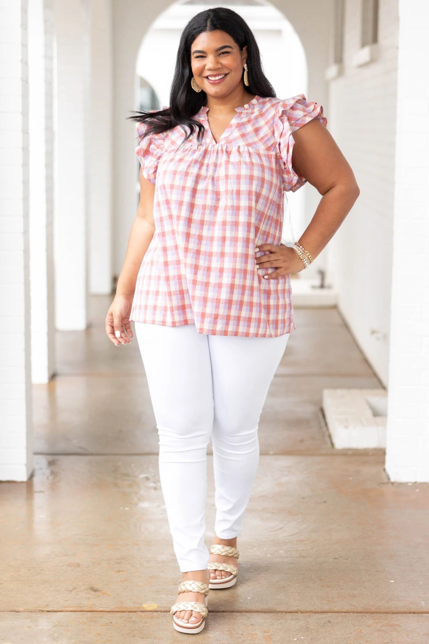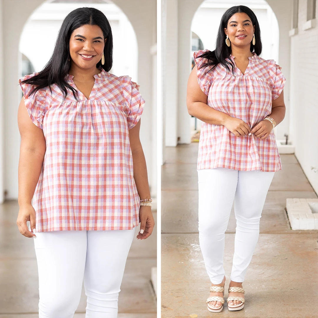 You won’t get lost in the crowd in this beauty! This top has a beautiful color mix with a plaid pattern that is perfect for the season! The flutter sleeves and flowy fit are perfect for the office or a date night! Style this top with skinnies and heels for a sassy chic look!