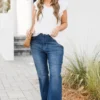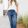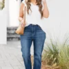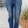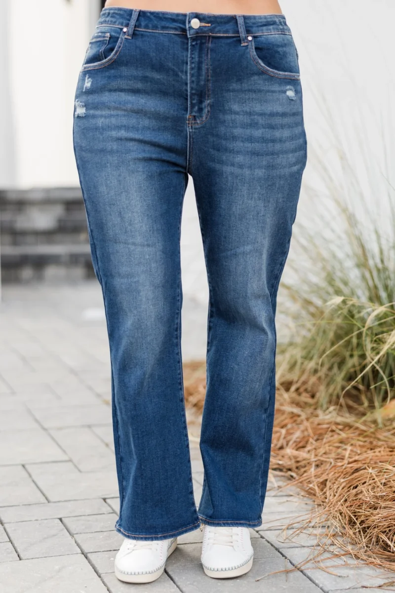 Get ready to get lost in style with these jeans in a dark wash! These high rise distressed ankle straight jeans will keep you looking effortlessly cool and on trend! Don’t get lost in boring fashion, stand out and make a statement with these unique and playful jeans!