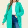 Add a splash of charming color to your wardrobe with this cardigan in emerald! This stylish cardigan features a classic collared design and open front with buttons for a cozy fit! Made from comfortable knitted material, it’s the perfect addition to any outfit!