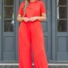This jumpsuit is perfect for setting a statement! It has a bold red color you can style for every occasion! It’s comfortable for all-day wear, has a figure-flattering fit, and features the cutest cinched tie waist and pockets! Style this romper with cute shoes and accessories for an effortlessly chic look!