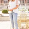 We simply adore this top! It is the perfect addition to your wardrobe! With sheer puff sleeves and a neutral cream color, this top adds a touch of elegance to any outfit! The babydoll design and flirty back tie is flattering and versatile, making it perfect for pairing with cute denim and heels!
