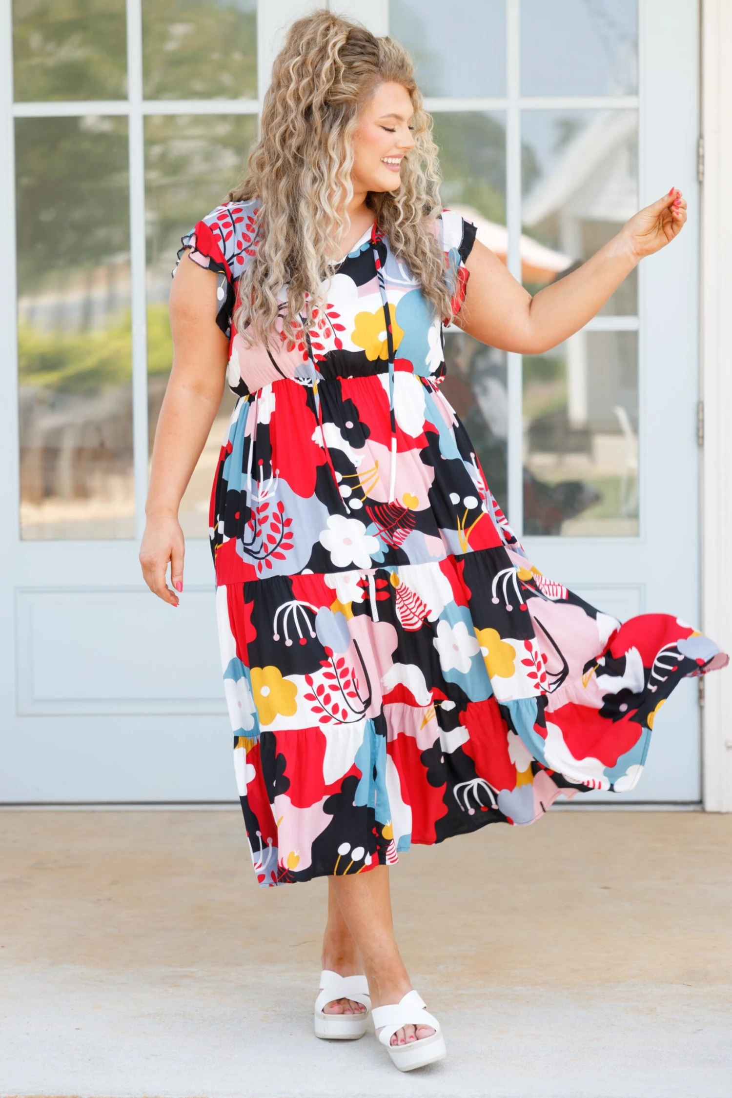 We are so in LOVE with this dress! It is perfect for those looking for an effortless day out! Its beautiful black and floral color mix adds an effortless elegance that’s sure to turn heads! The dress is lightweight and comfortable, perfect for any casual outing!