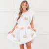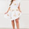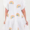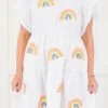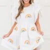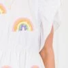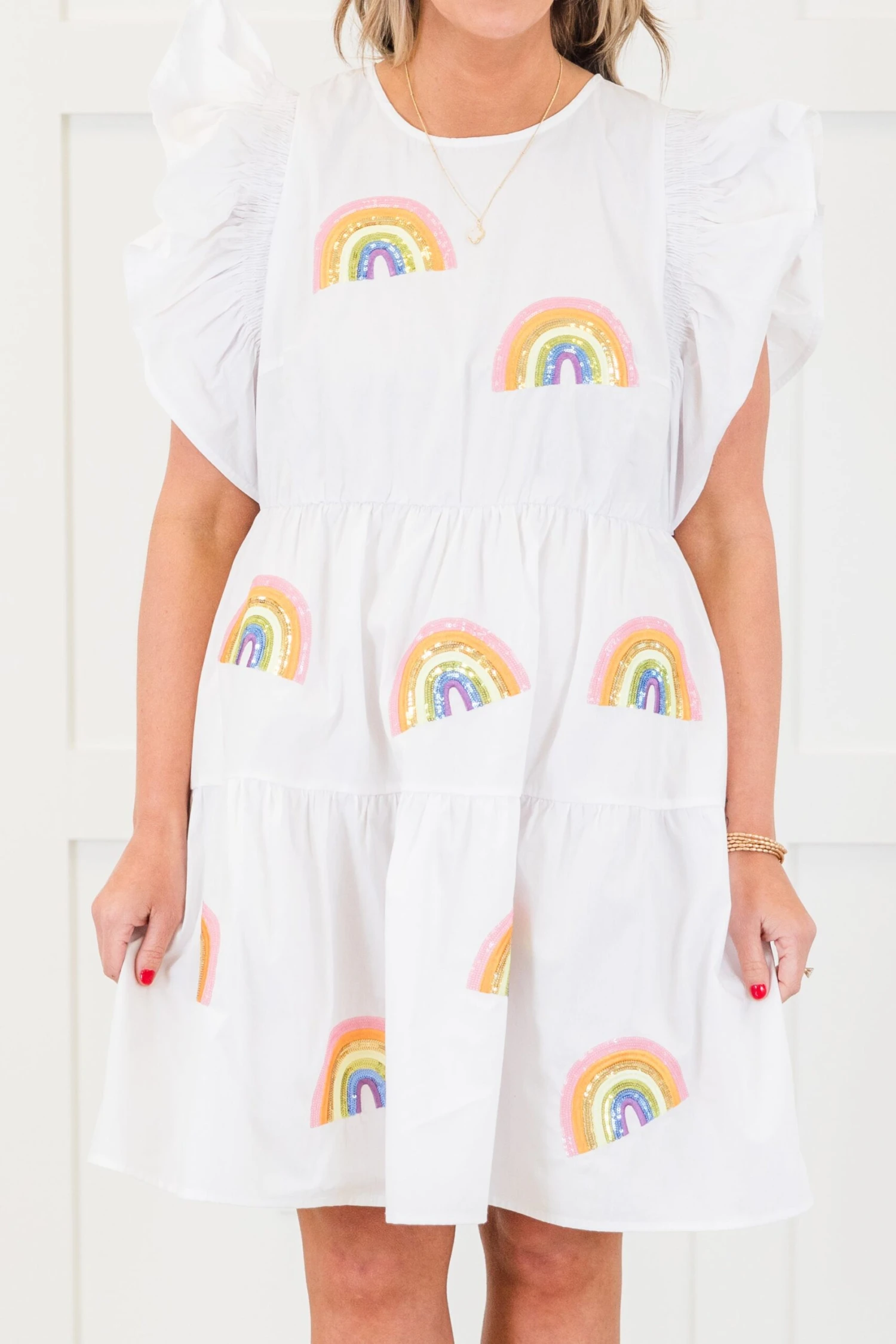 Elevate your wardrobe with the Love And Luck Dress in white! Adorned with delicate embroidered sequin rainbows, this dress exudes charm and whimsy! The flutter sleeves and babydoll silhouette add a touch of femininity to any occasion! Stand out in style and spread joy wherever you go!
