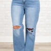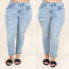 Look fabulous in these trendy light wash jeans! Crafted with a frayed hemline and subtle distressing, these jeans are perfect for any casual outing! Rock a timeless style that’s inspired by the stars!