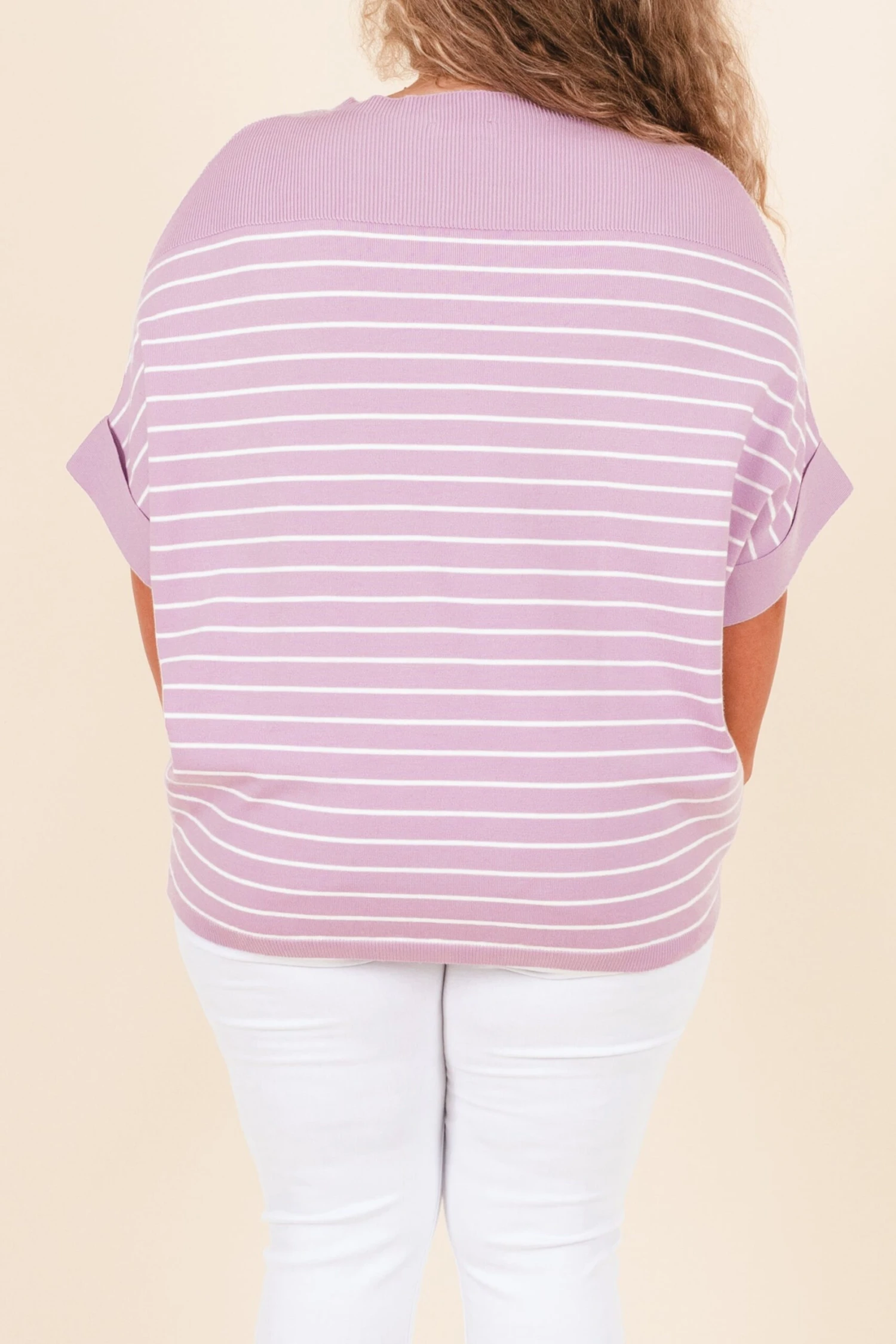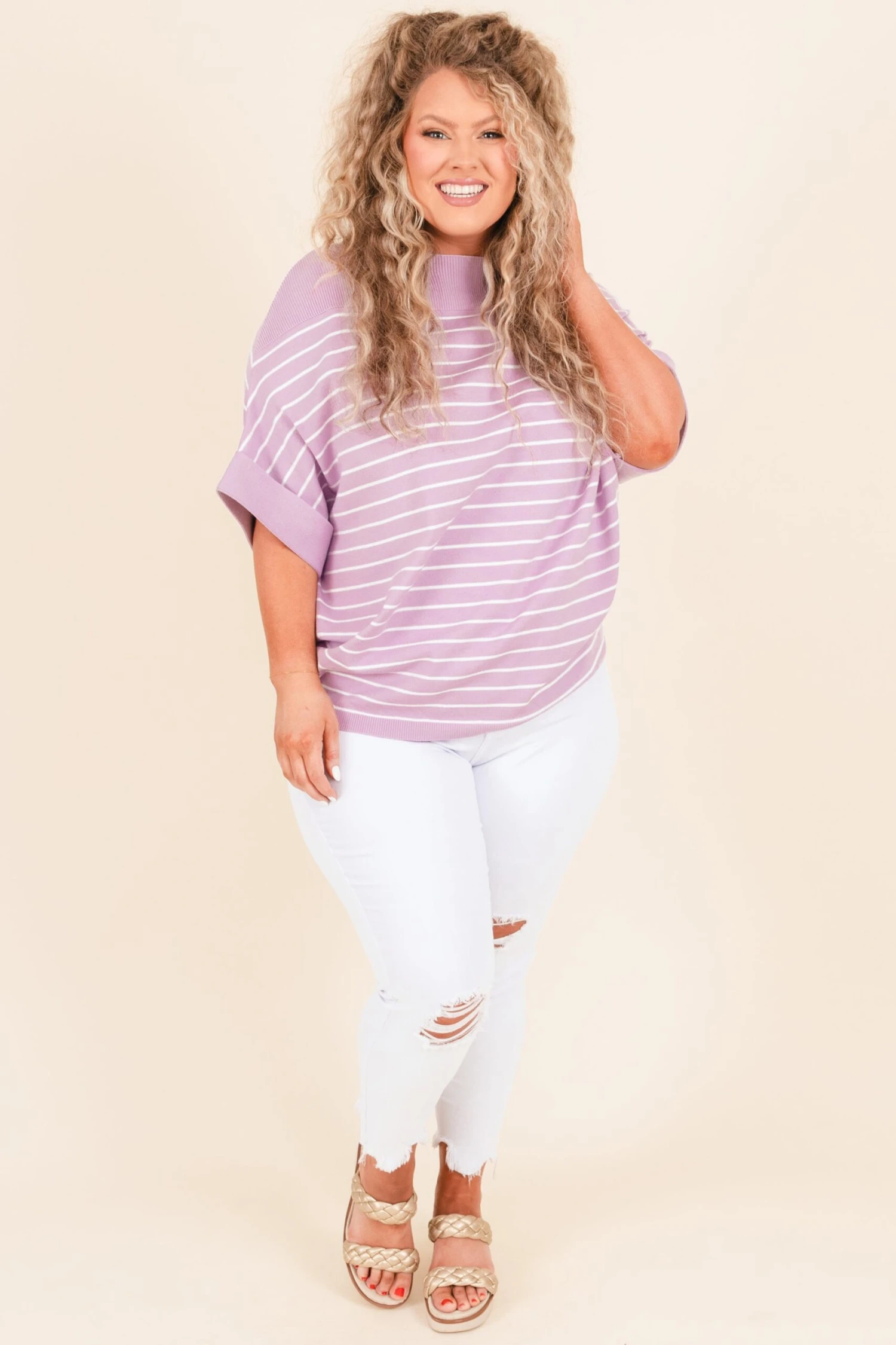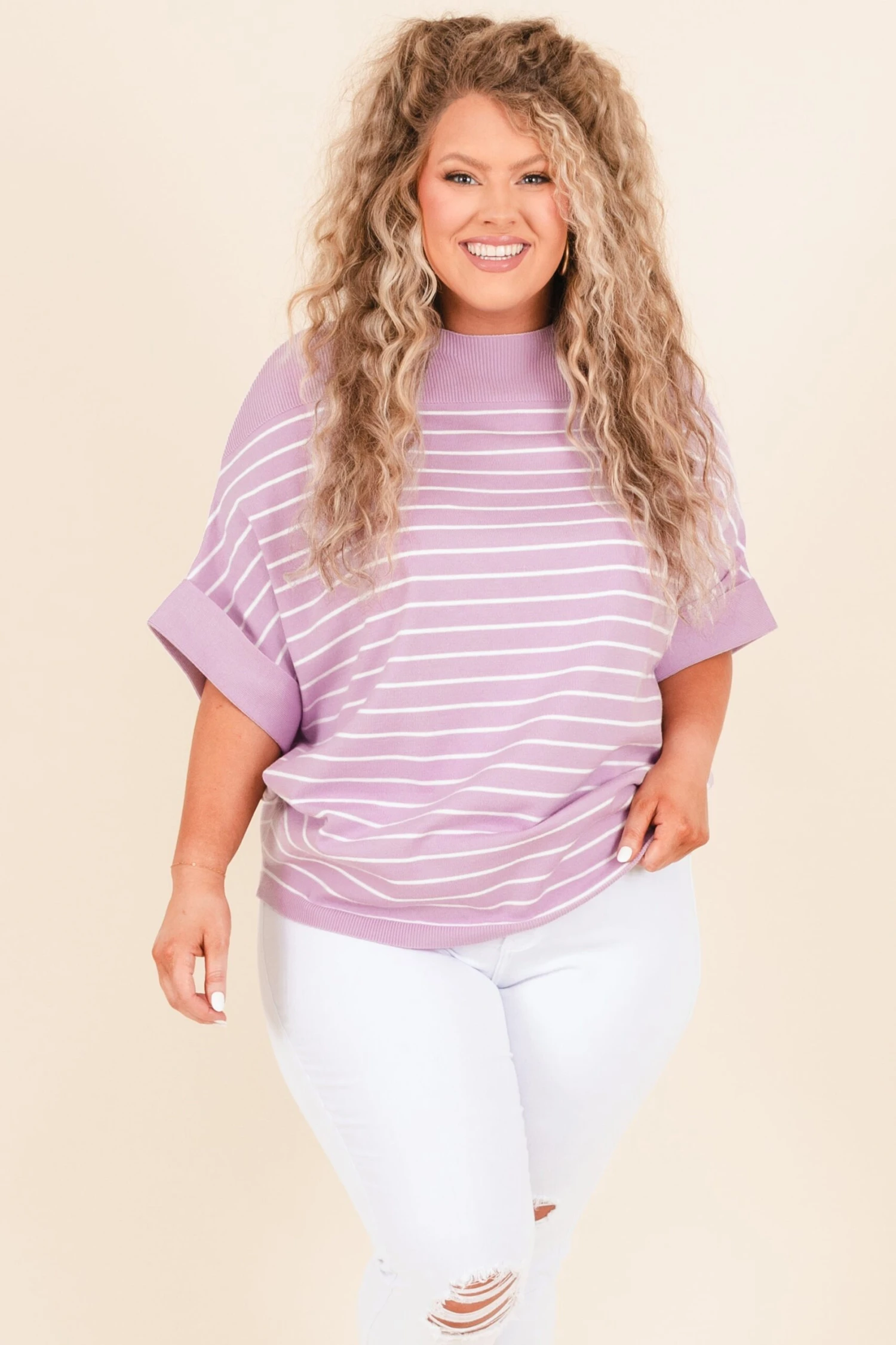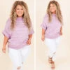 We mean it when we say we love this top! This top has a simple stripe pattern with a lilac color that is perfect for the season! It’s comfortable for all-day wear, has an oversized fit, and features the cutest pre-cuffed sleeves! Style this top with distressed skinnies or shorts for an easy everyday look!Â