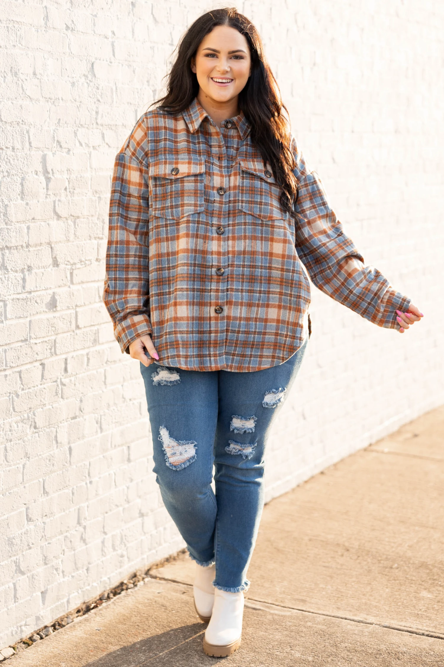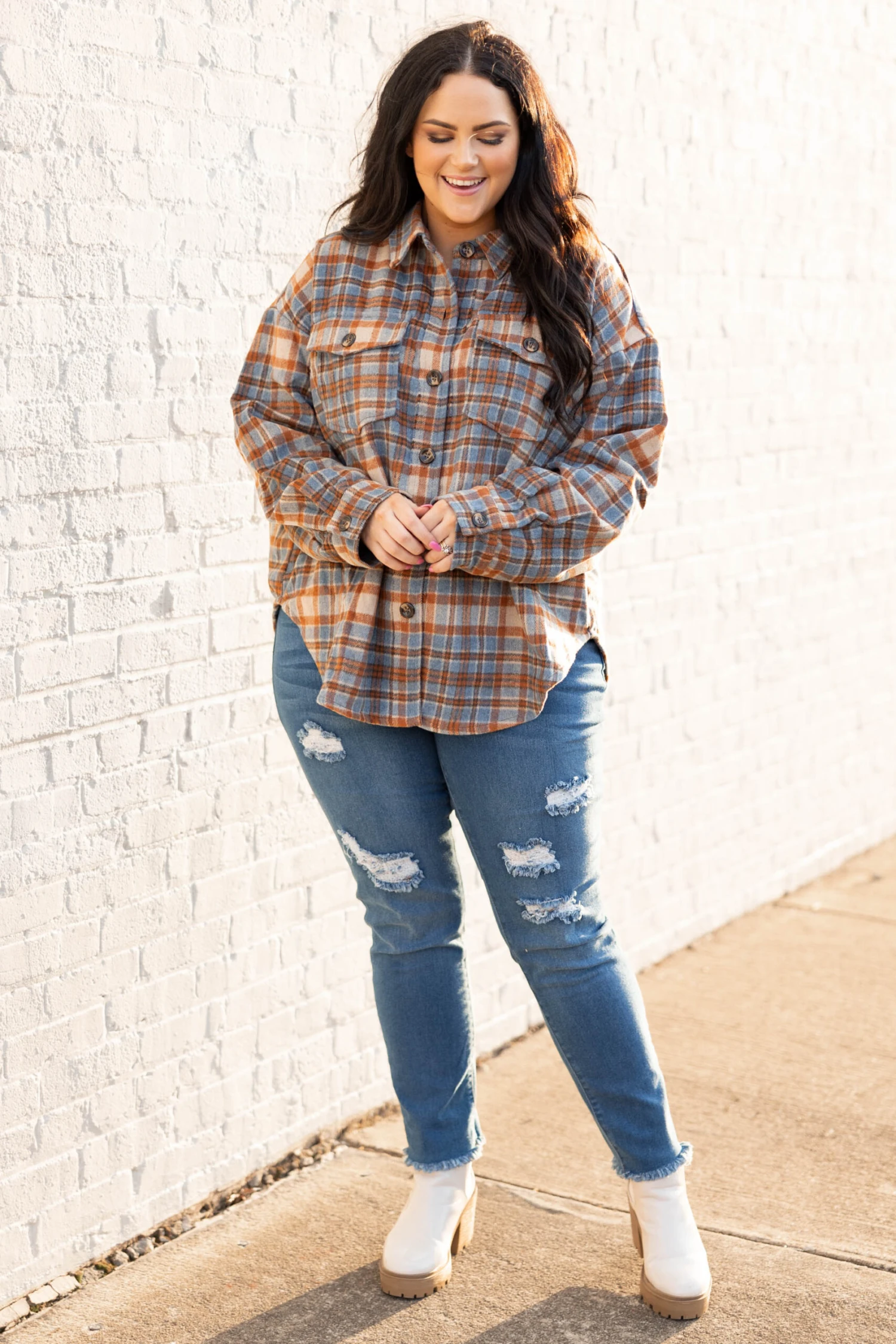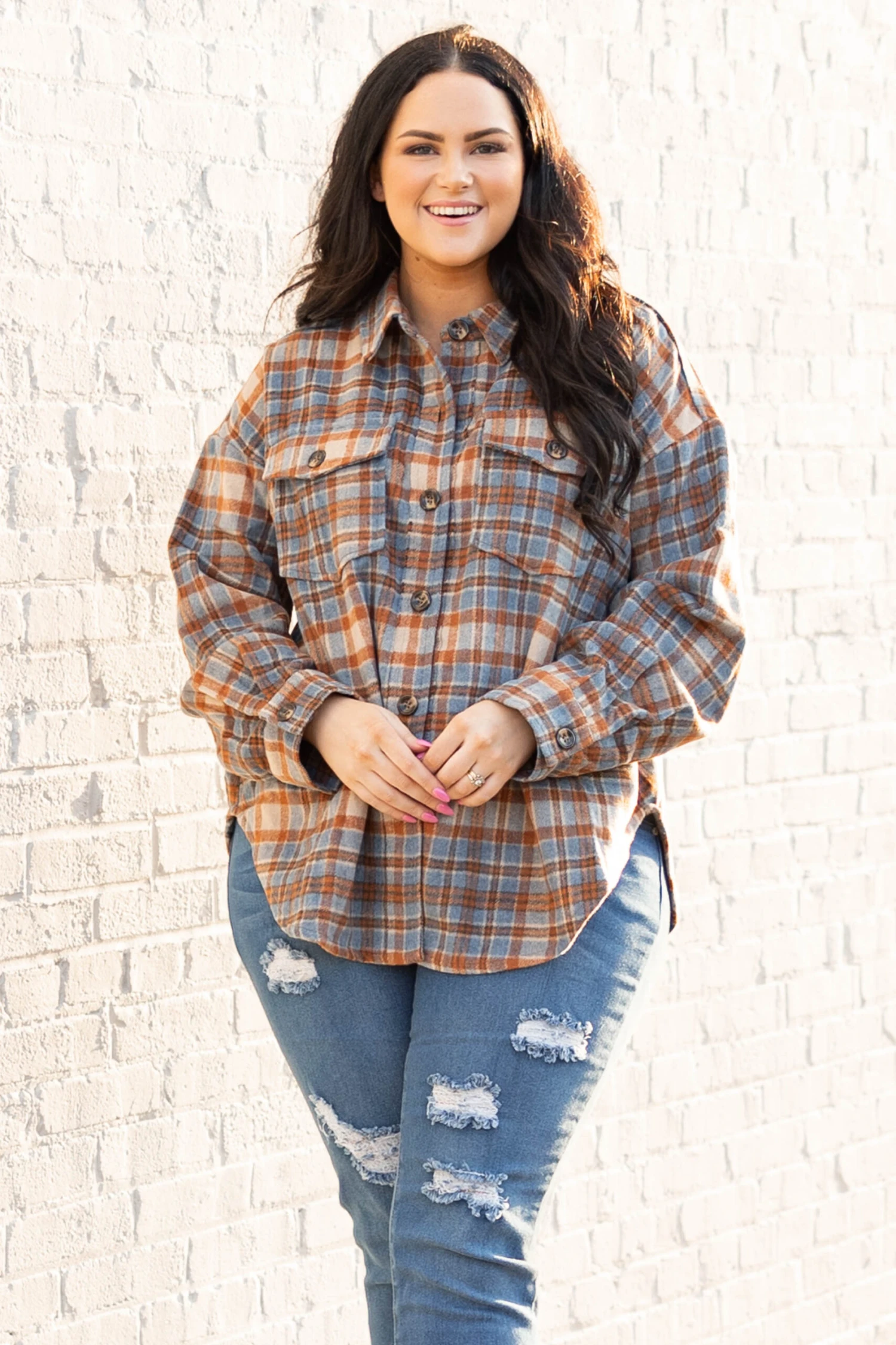 You’re bound to have a lovely time in this beauty! This shacket has a lovely blue multi color and a trendy plaid pattern that is just in time for the season! Layer this over a solid top and skinnies or button it up with leggings and booties for the ultimate look!
