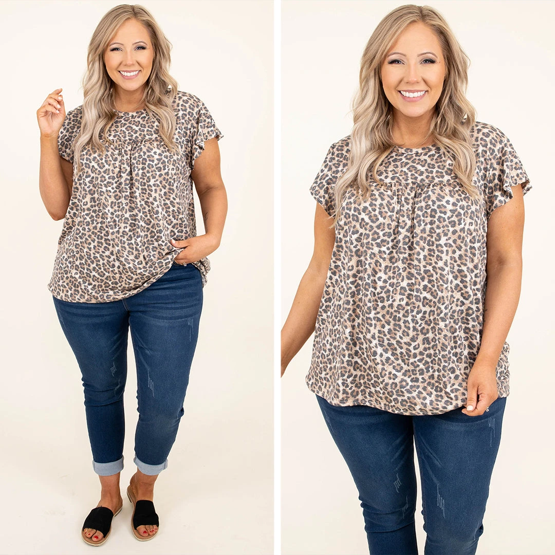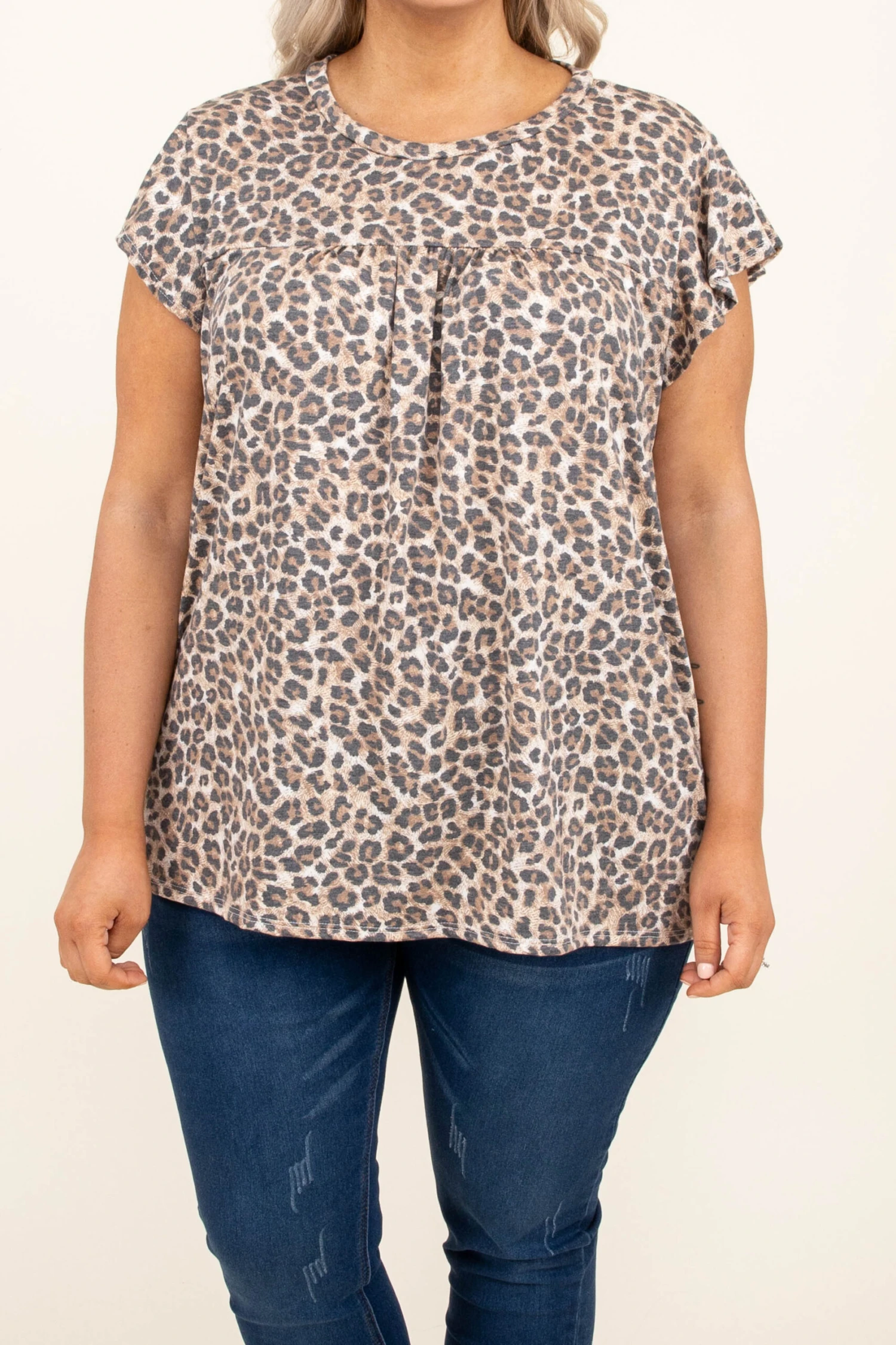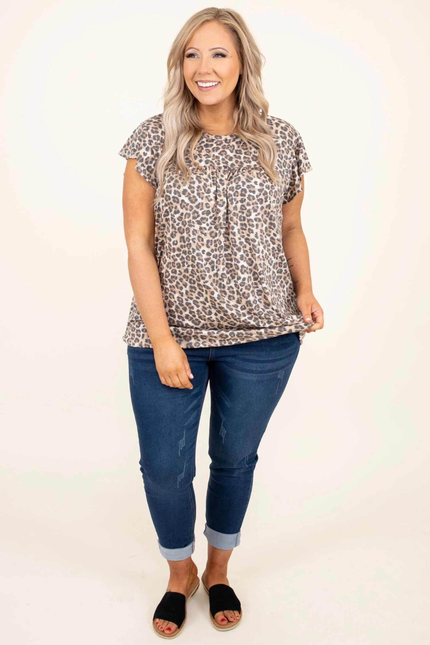You will be lovin’ this top all season long! The leopard pattern is so fierce and the babydoll style will flatter everyone! We love the super soft material and the flutter sleeves are so sweet! Style this with some denim and sandals for an easy everyday look!