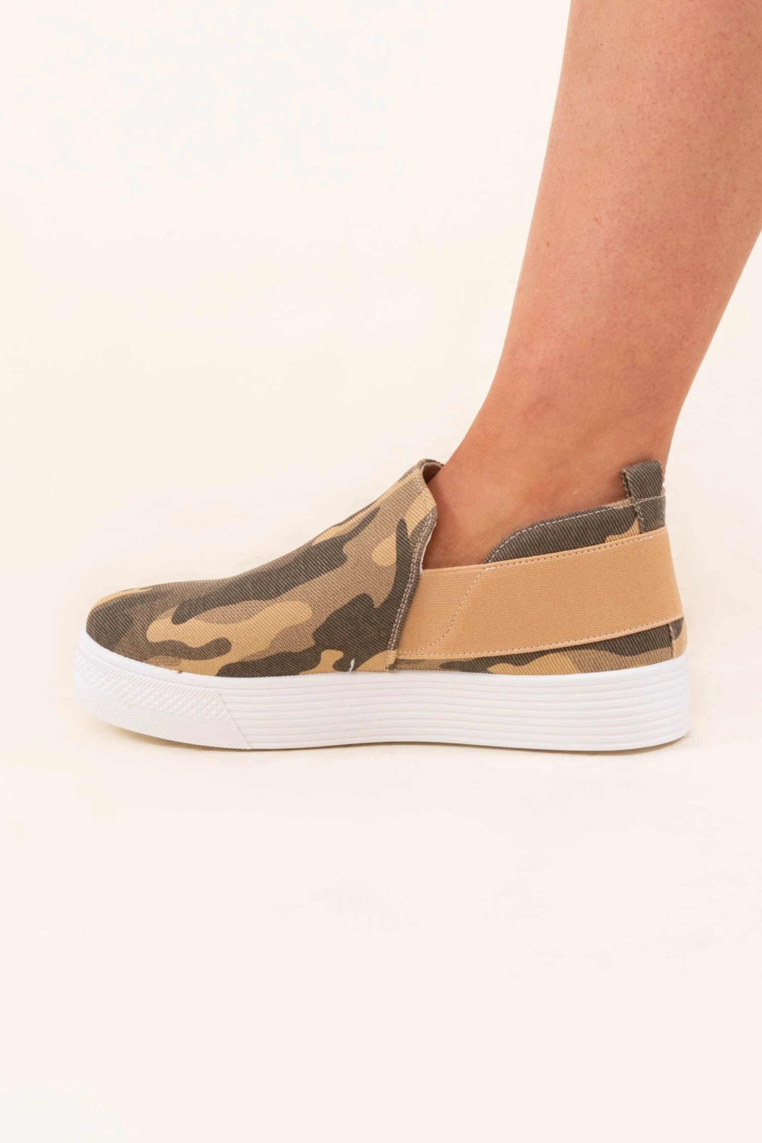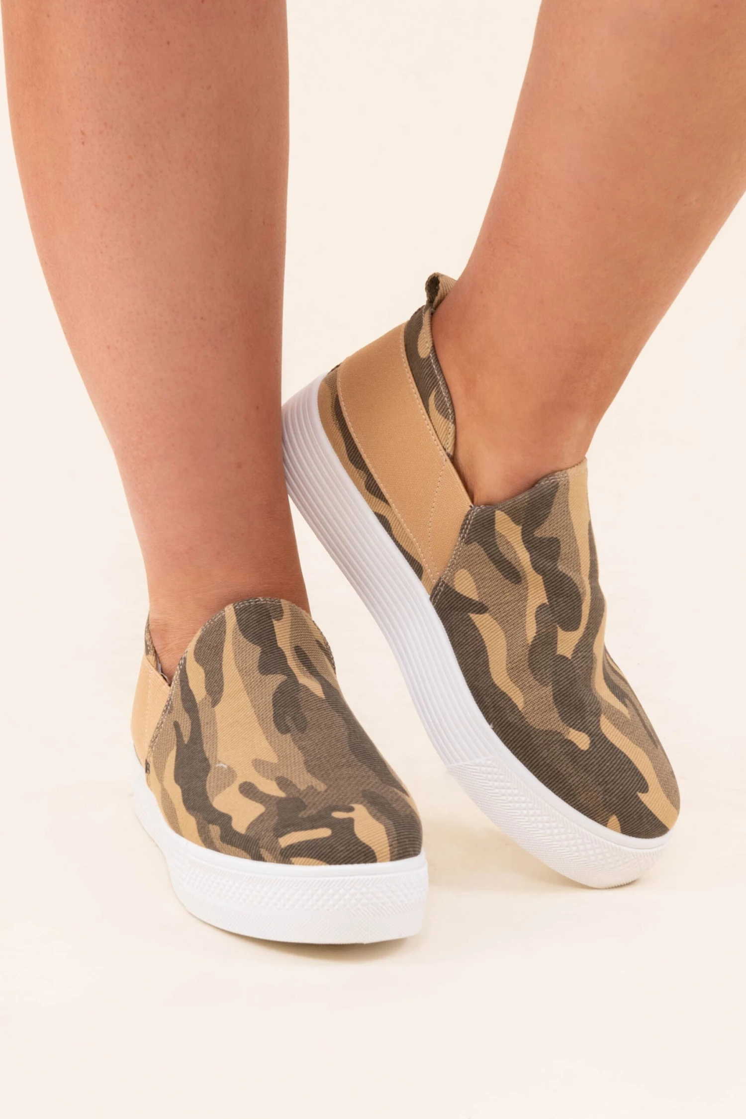 We are completely in love with these slides! They have a trendy camo print with a taupe band across the back for added style. Pair these with your fave outfits this season!