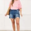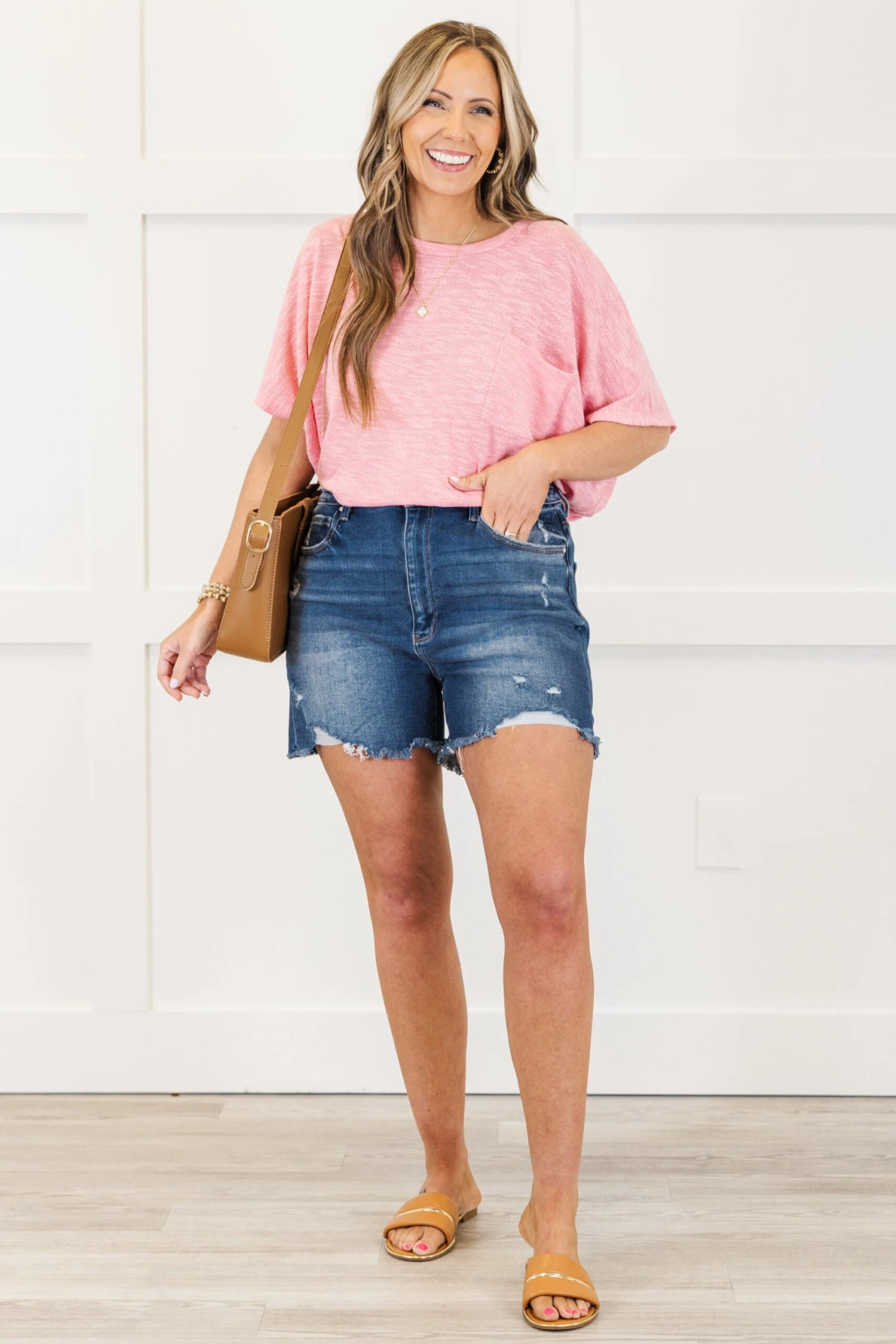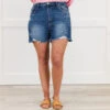 Rock a trendy look with these Lunch In The City Shorts! The dark wash and distressed design add an edgy flair, while the frayed hemline gives off a playful vibe! These shorts are so comfy, you’ll never want to take them off! Perfect for any adventure!