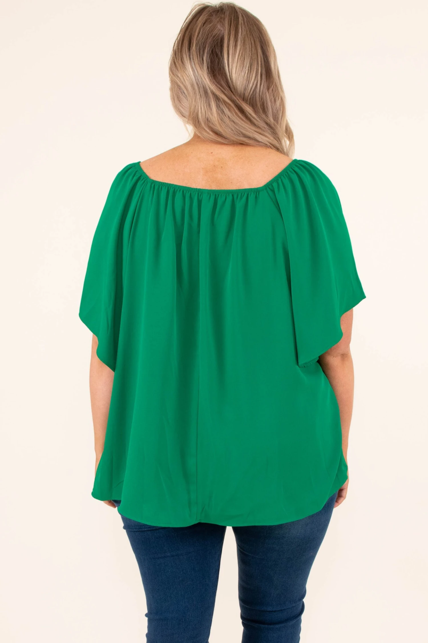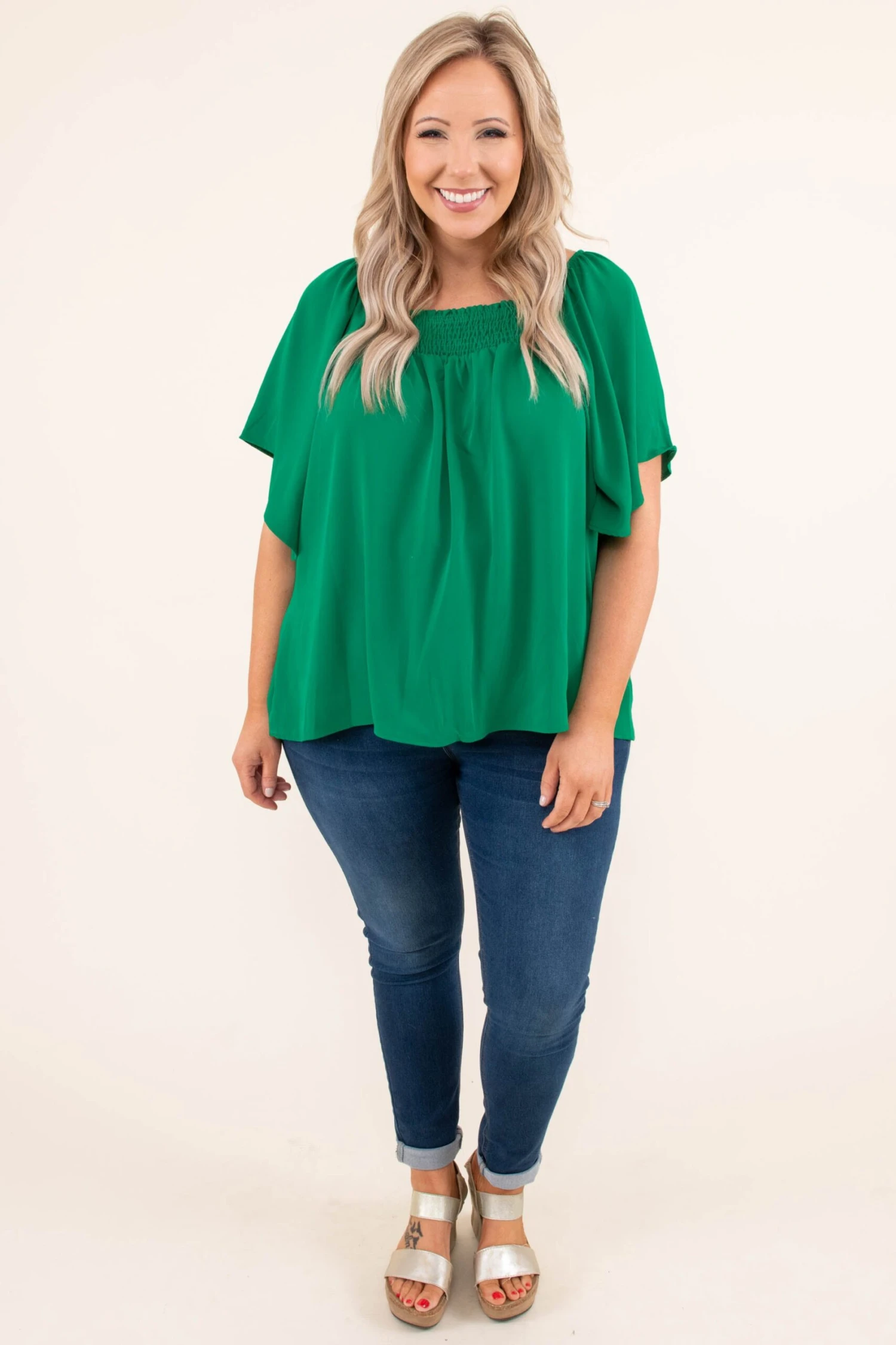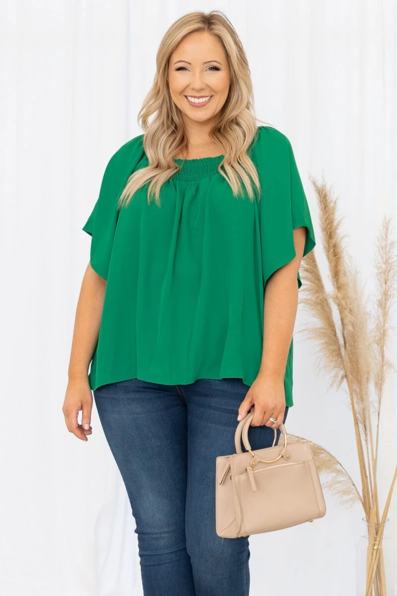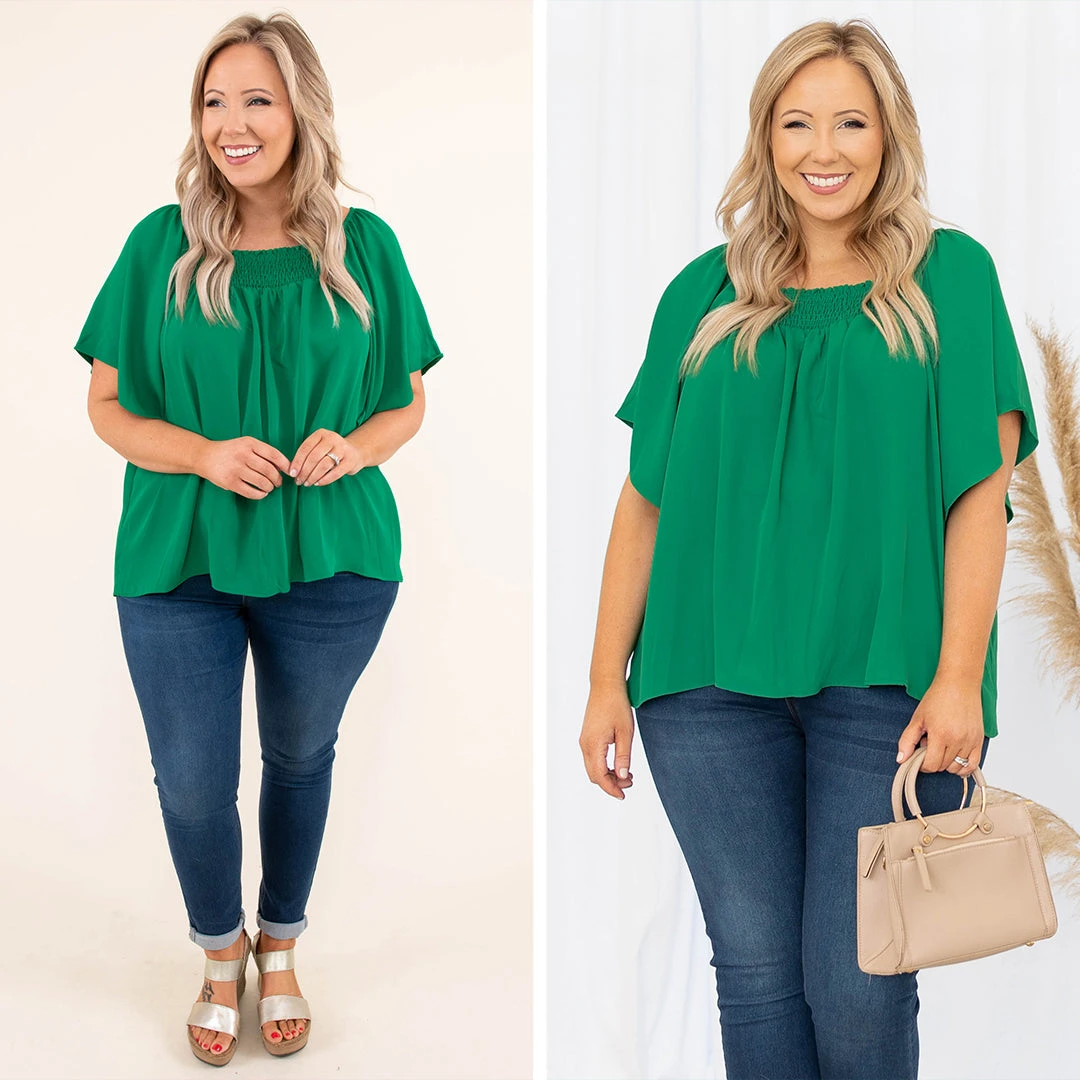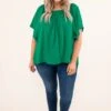 Feel luxe in this adorable green top this season! The material is oh so soft and the relaxed fit flatters everyone! The flutter sleeves give this top a sweet feminine feel and the green color will catch everyone’s eyes! Pair this with skinnies, a cardigan, and booties for a super stylish look!
