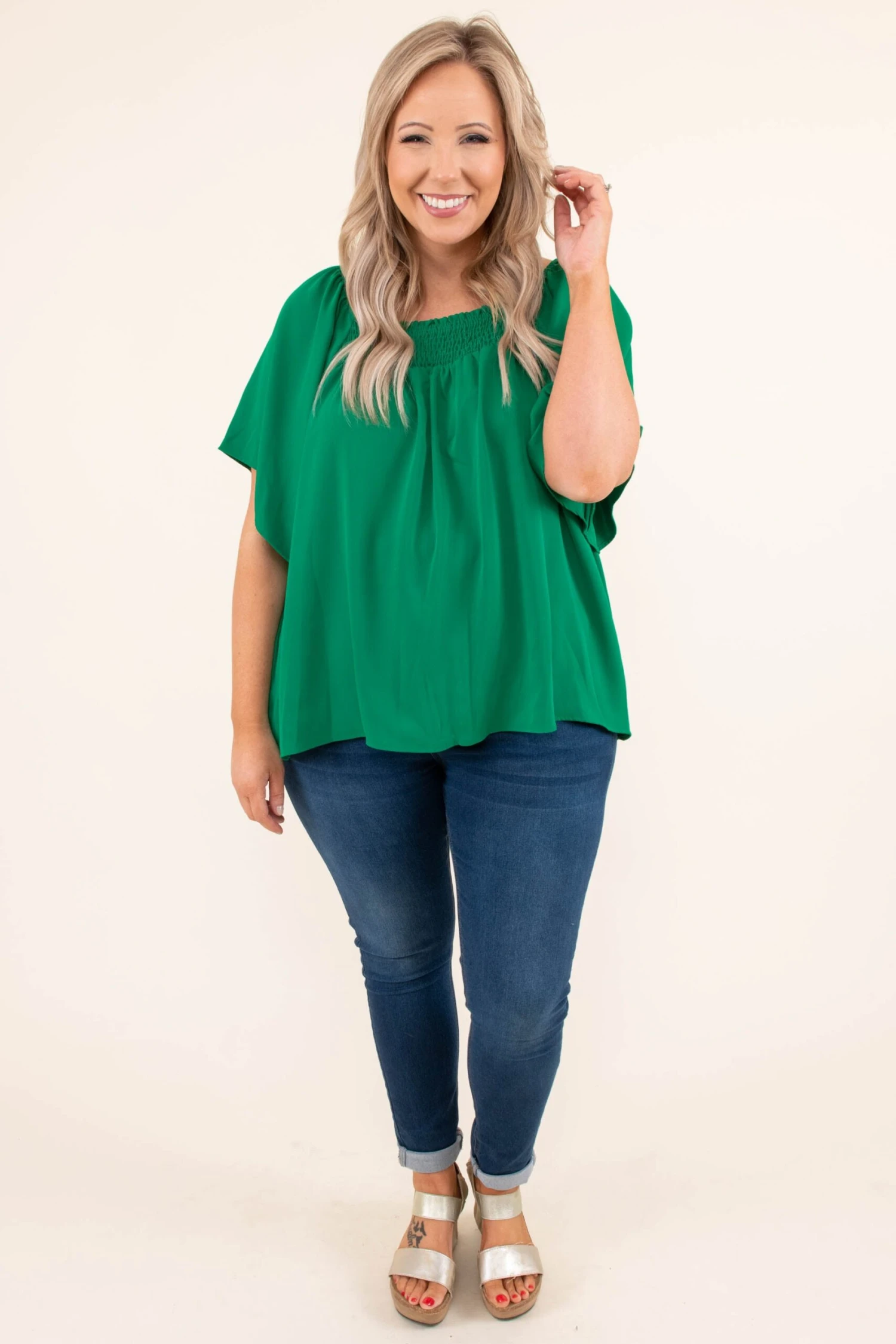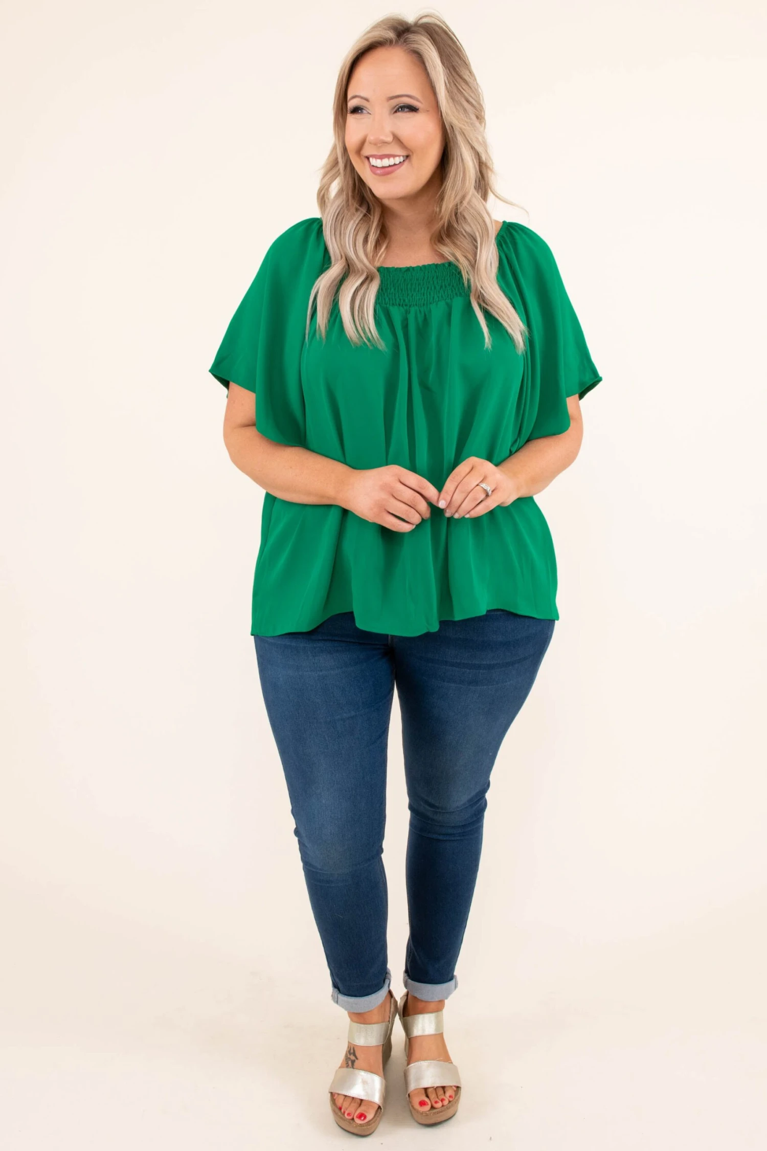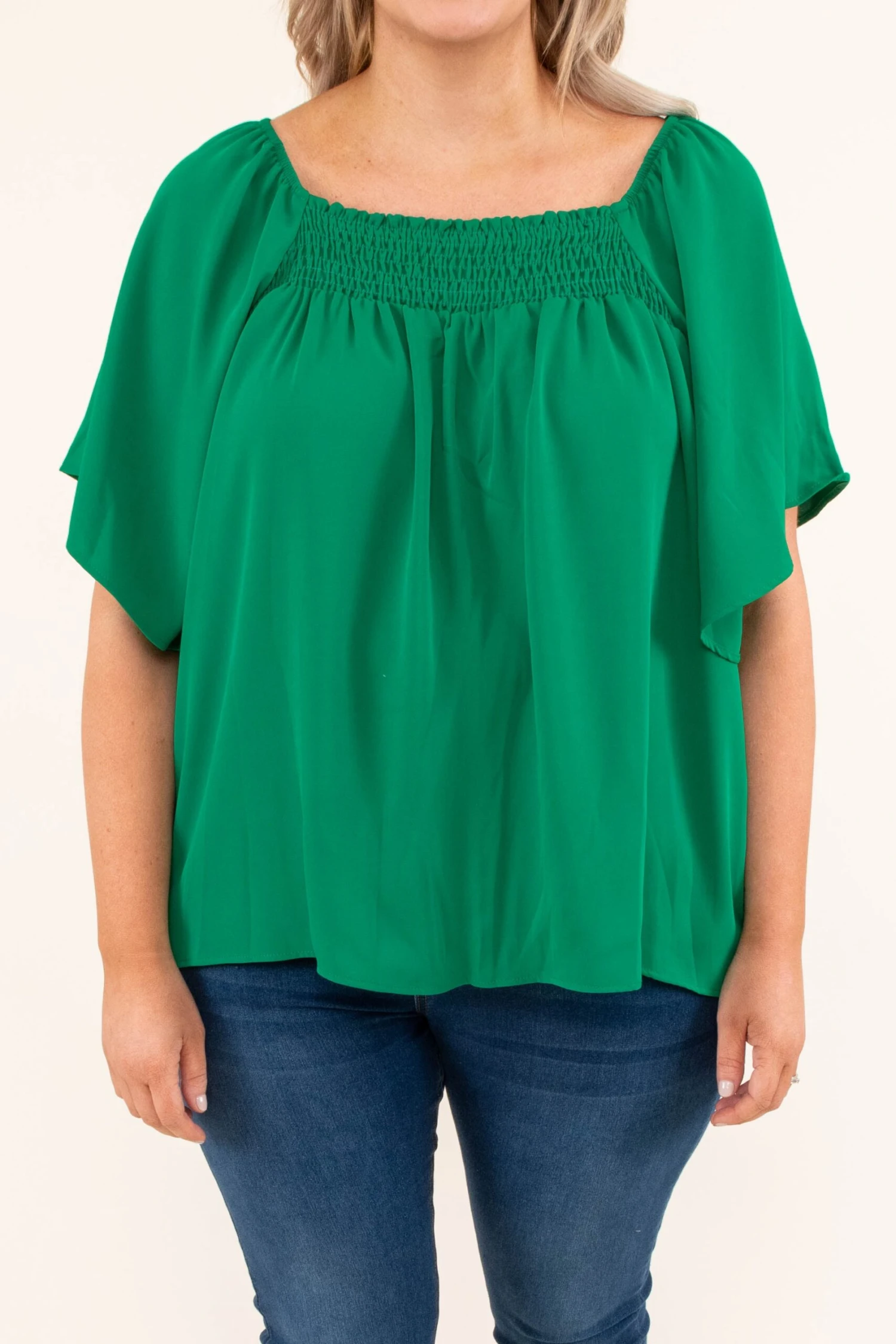 Feel luxe in this adorable green top this season! The material is oh so soft and the relaxed fit flatters everyone! The flutter sleeves give this top a sweet feminine feel and the green color will catch everyone’s eyes! Pair this with skinnies, a cardigan, and booties for a super stylish look!
