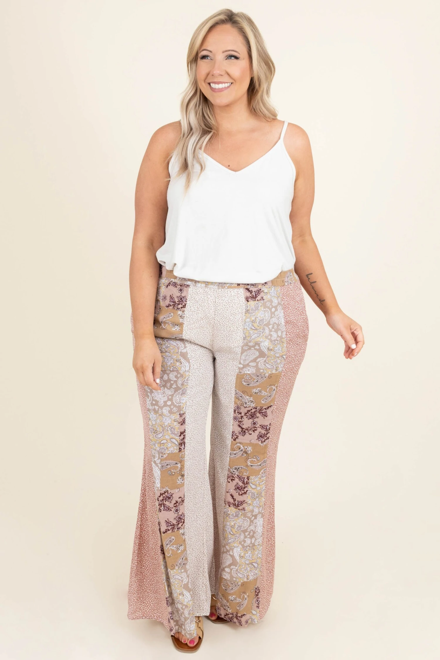 These bottoms were made just right for you! The sand mix colors are so pretty and neutral enough to pair with anything! The flare trend is so big right now and the elastic waist is so comfy! Style this with a basic top for a fabulous look!