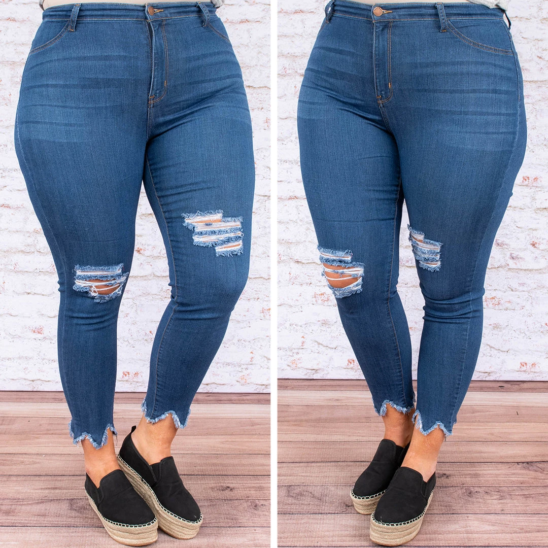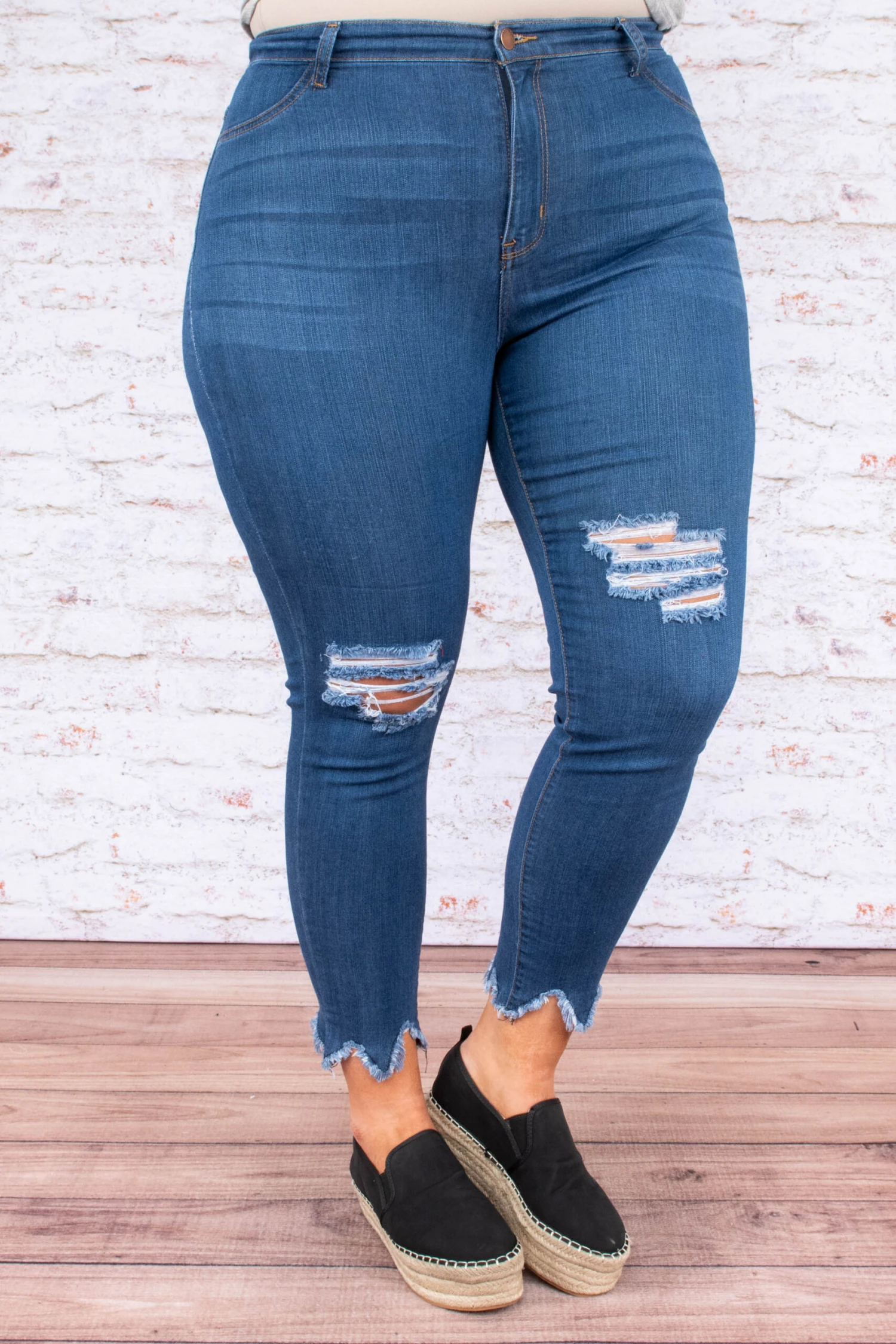 Every hour is magic in these trendy skinnies! They have a chic medium wash, high waist fit, and cool distressing on the knee! Toss them on with a flowy top and wedges for the perfect outfit!