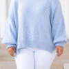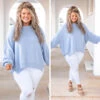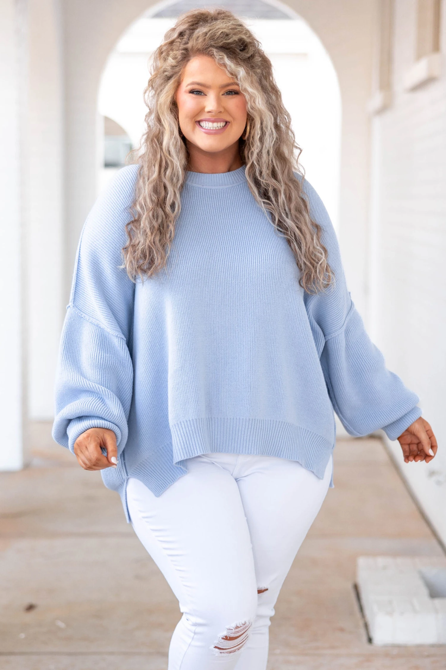 This top is truly magically perfect! The light blue color and super comfy material is just that you need in your new favorite sweater! The stretchy, figure flattering fit is great for all day wear! The bubble sleeves are so chic! Pair this sweater with some distressed skinnies and sandals or wedges for a classic chic look!