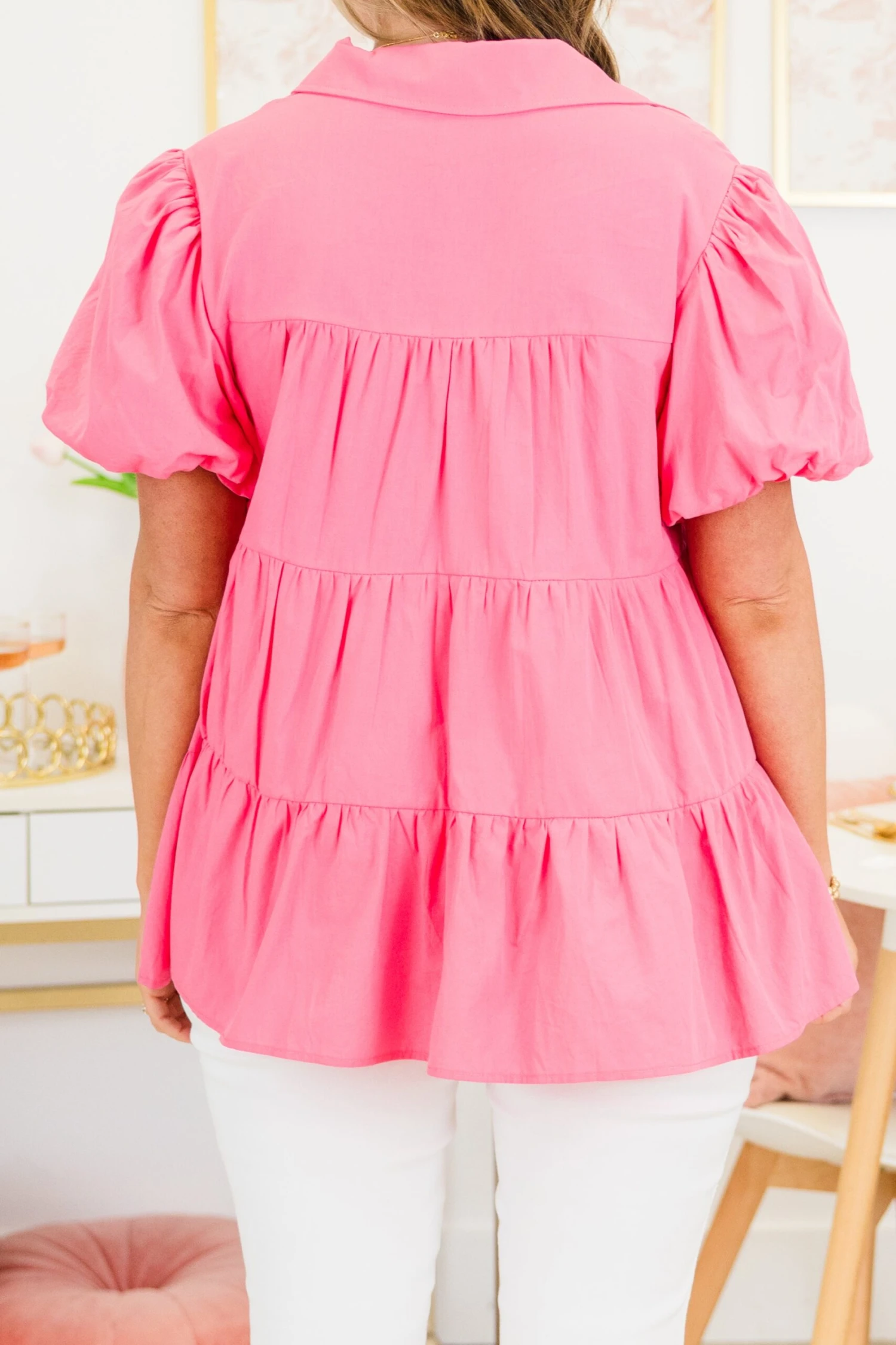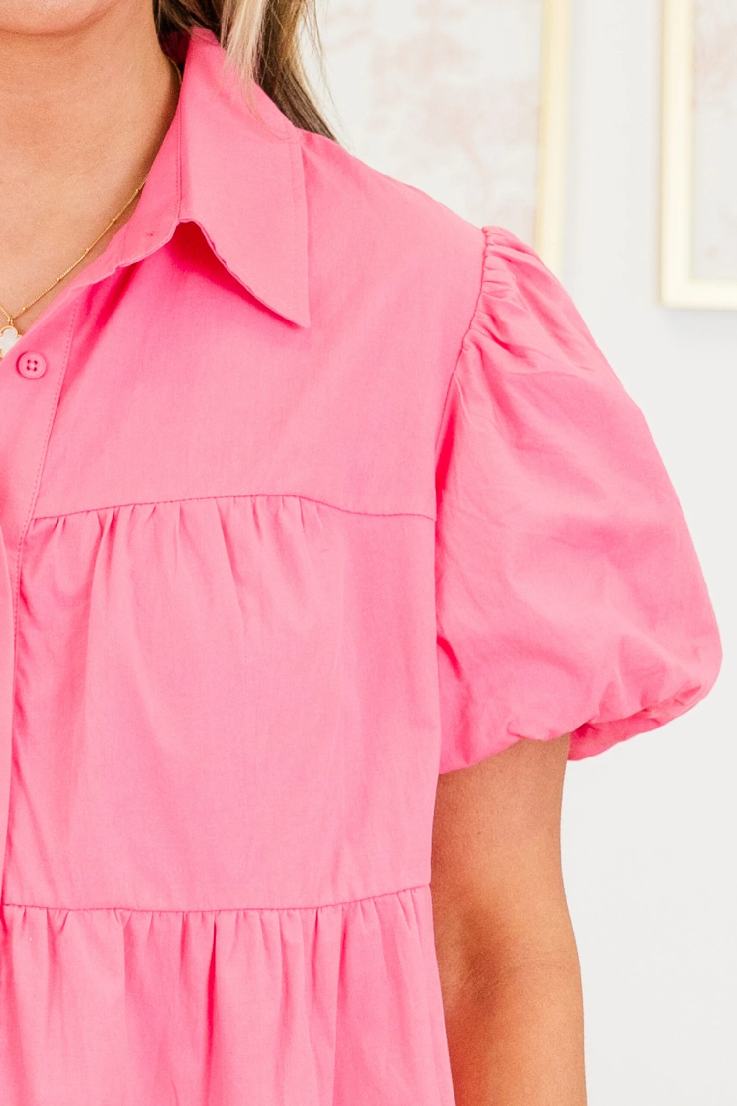 Introducing our Magnolia Sweetheart Babydoll Top in pink! This beautiful top features short puffed sleeves, a collared neckline, and delicate ruffled details! The perfect blend of style and comfort, it’s sure to become a staple in your wardrobe! Bring out your sweet side with this charming top!