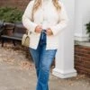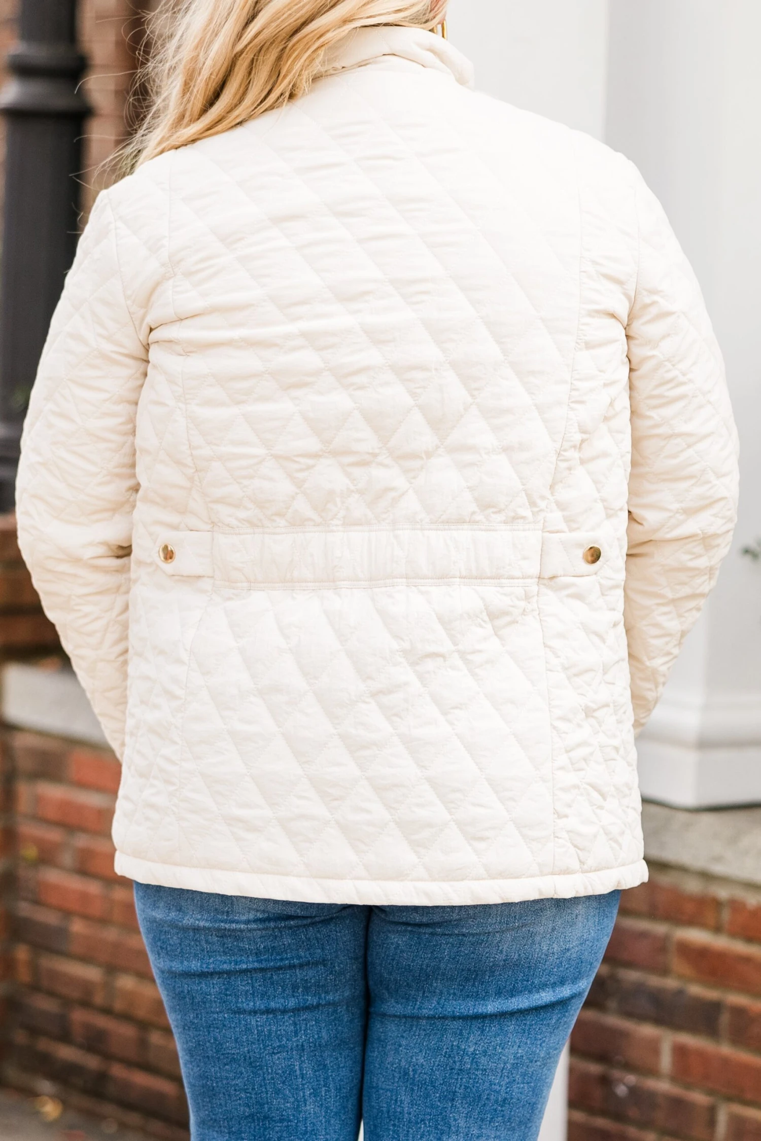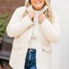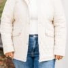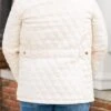 Stay stylish and cozy with this jacket in cream! This lightweight quilted jacket features gold buttons for a touch of elegance! Perfect for chilly days, this jacket will keep you warm and chic!