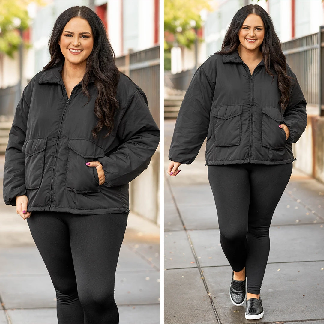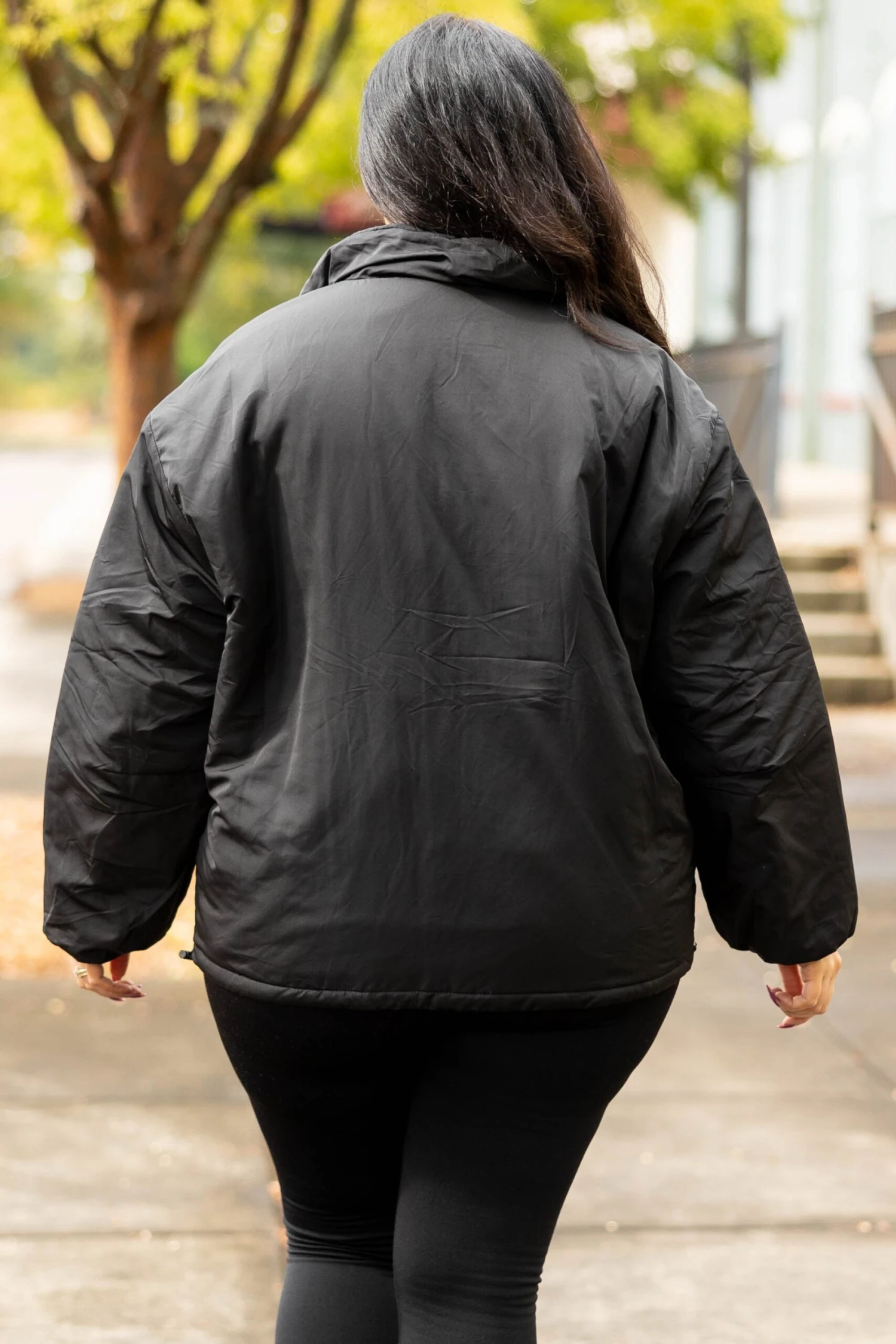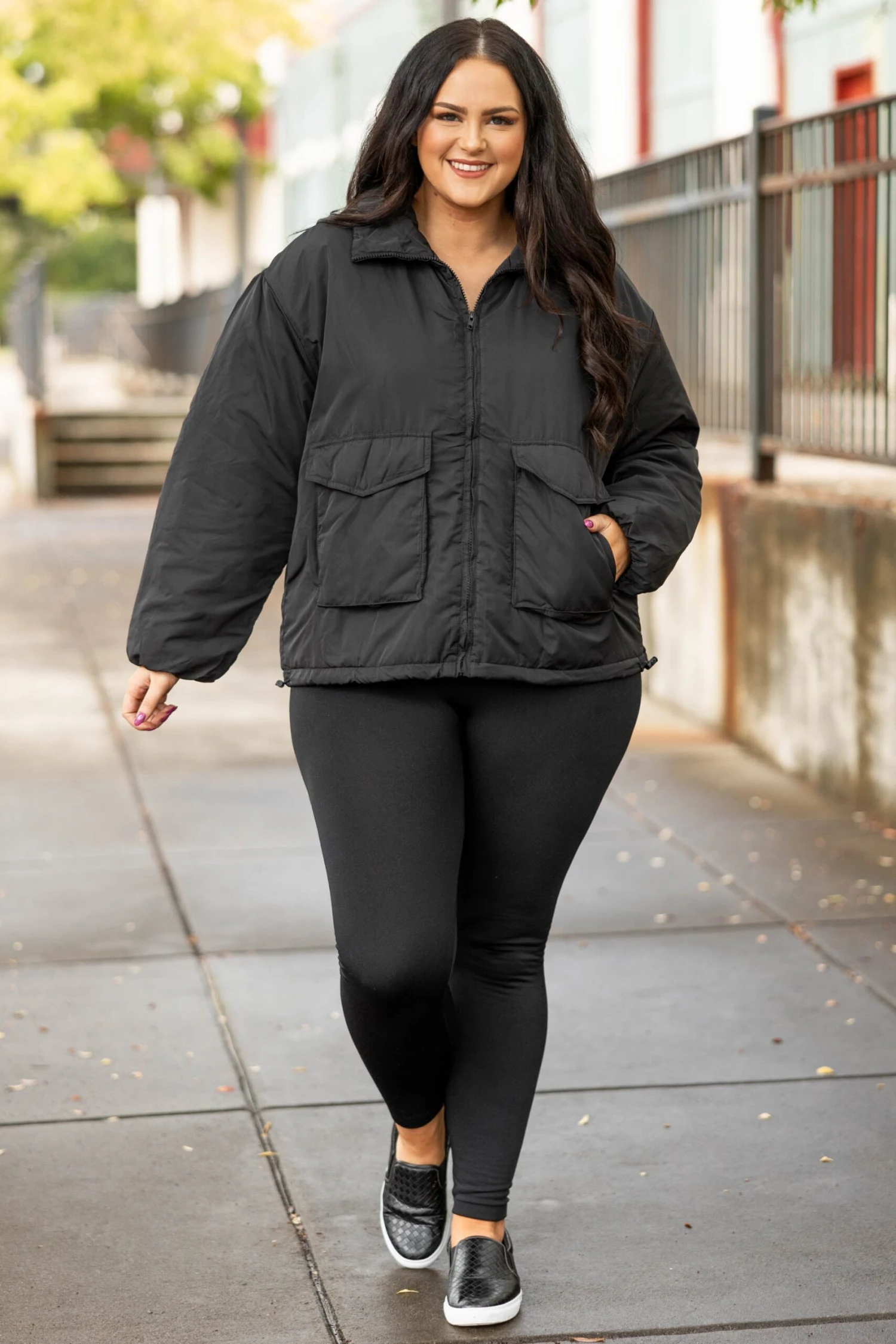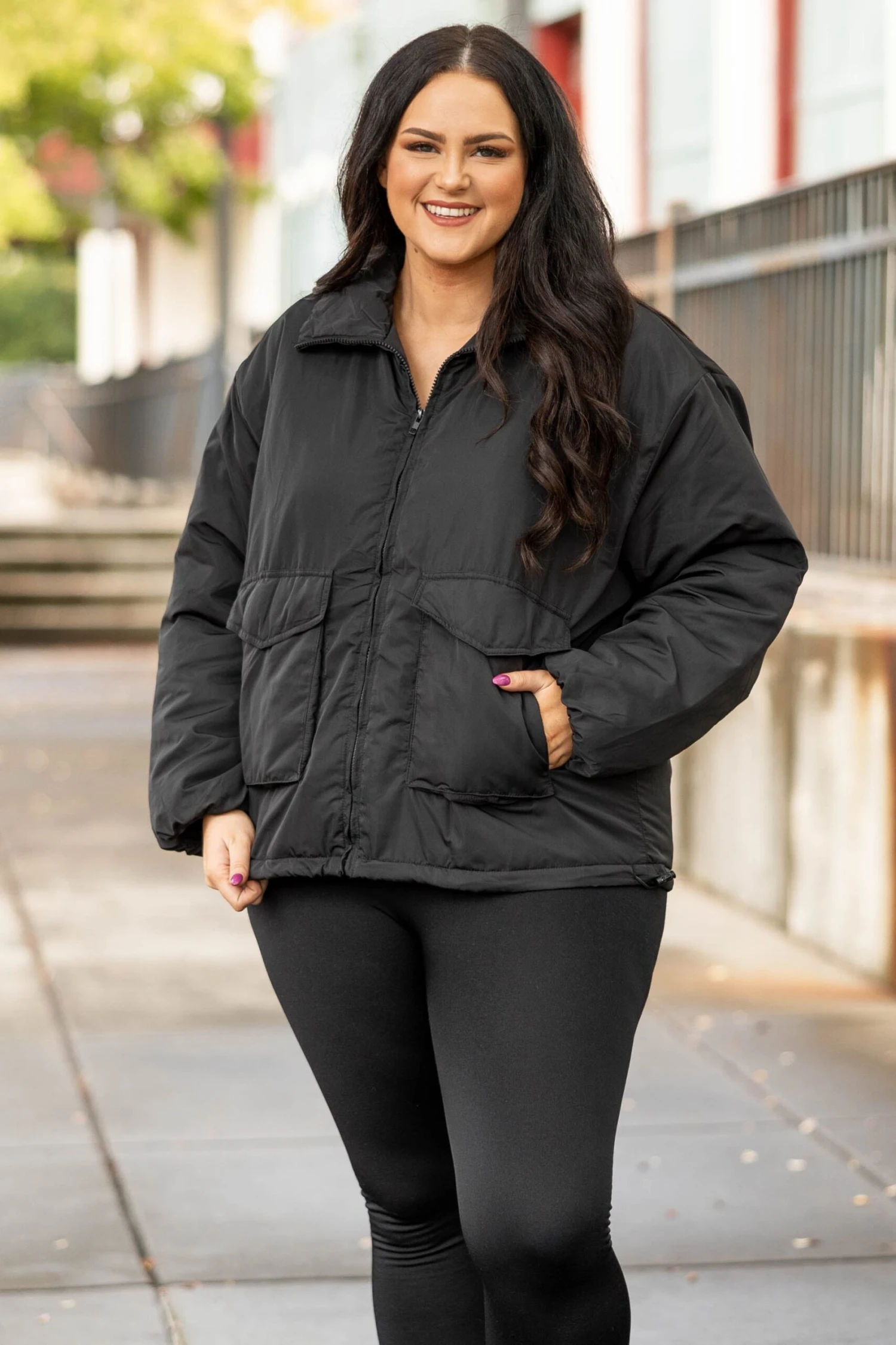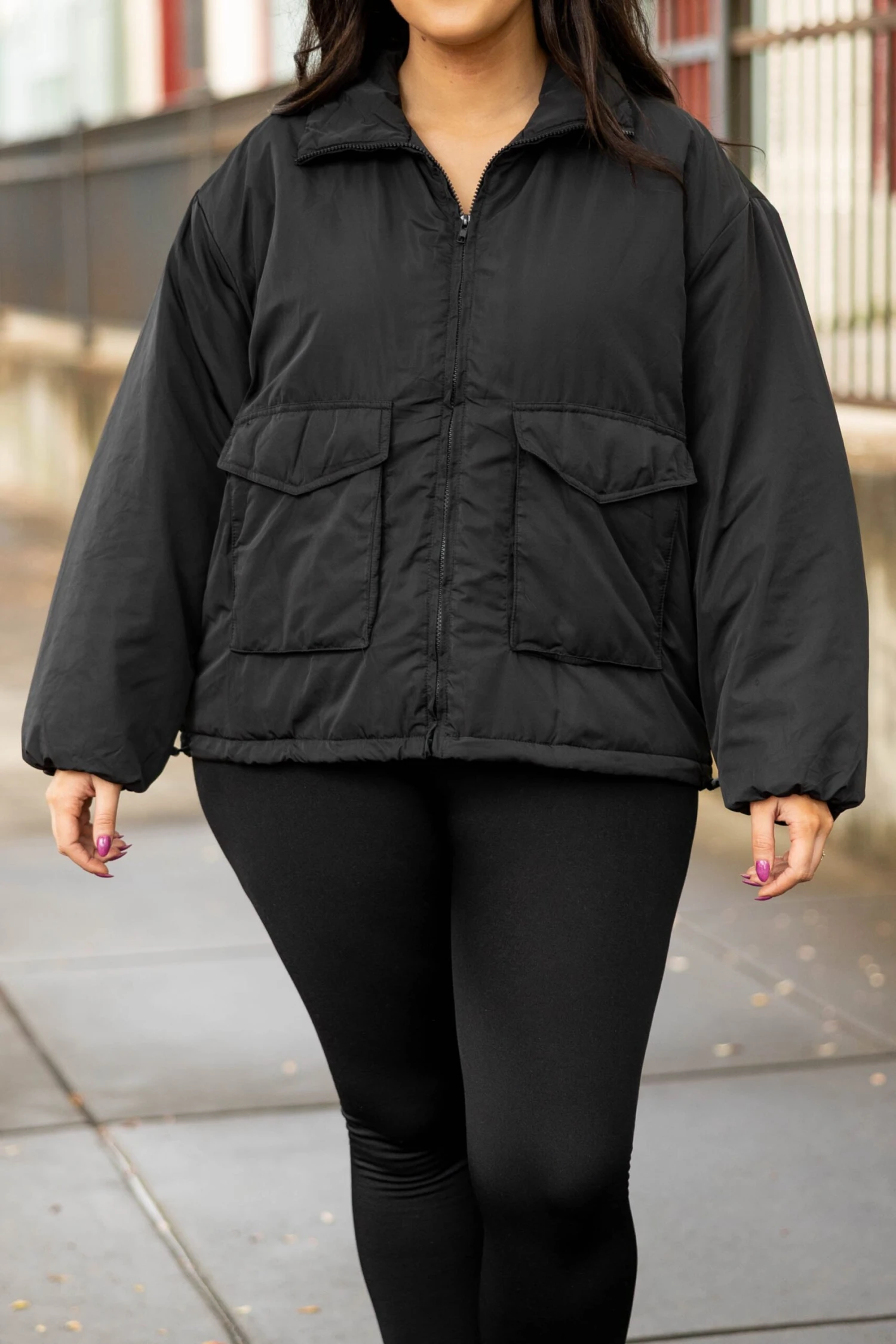 Make some great memories in this jacket! The black color will go with everything in your closet and the puffer style is so trendy right now! This cutie will keep you warm while looking amazing! Style this with any top and bottoms for a fashion forward look every time!