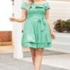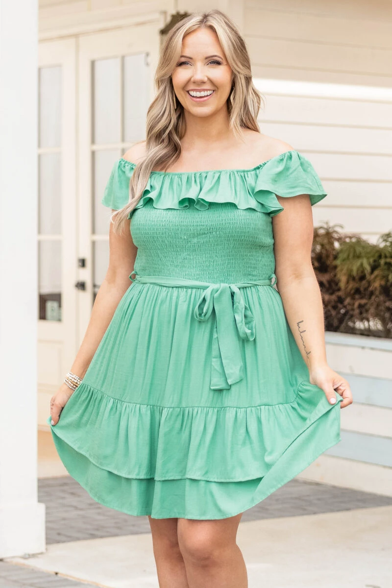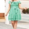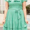 You’ll be the news in this gorgeous dress! It has a bold emerald color that is perfect for the season! The smocked bodice and flutter sleeves is the perfect combo for your new favorite dress! Style this dress with some cute accessories and heels for an unforgettable chic look!