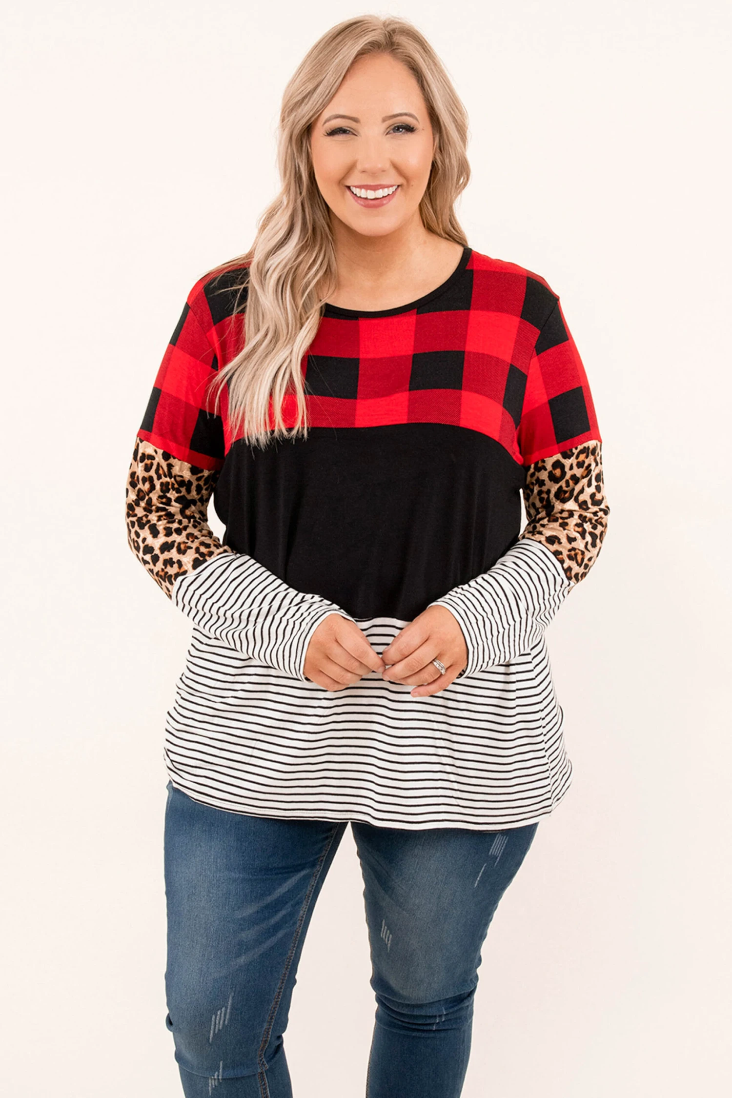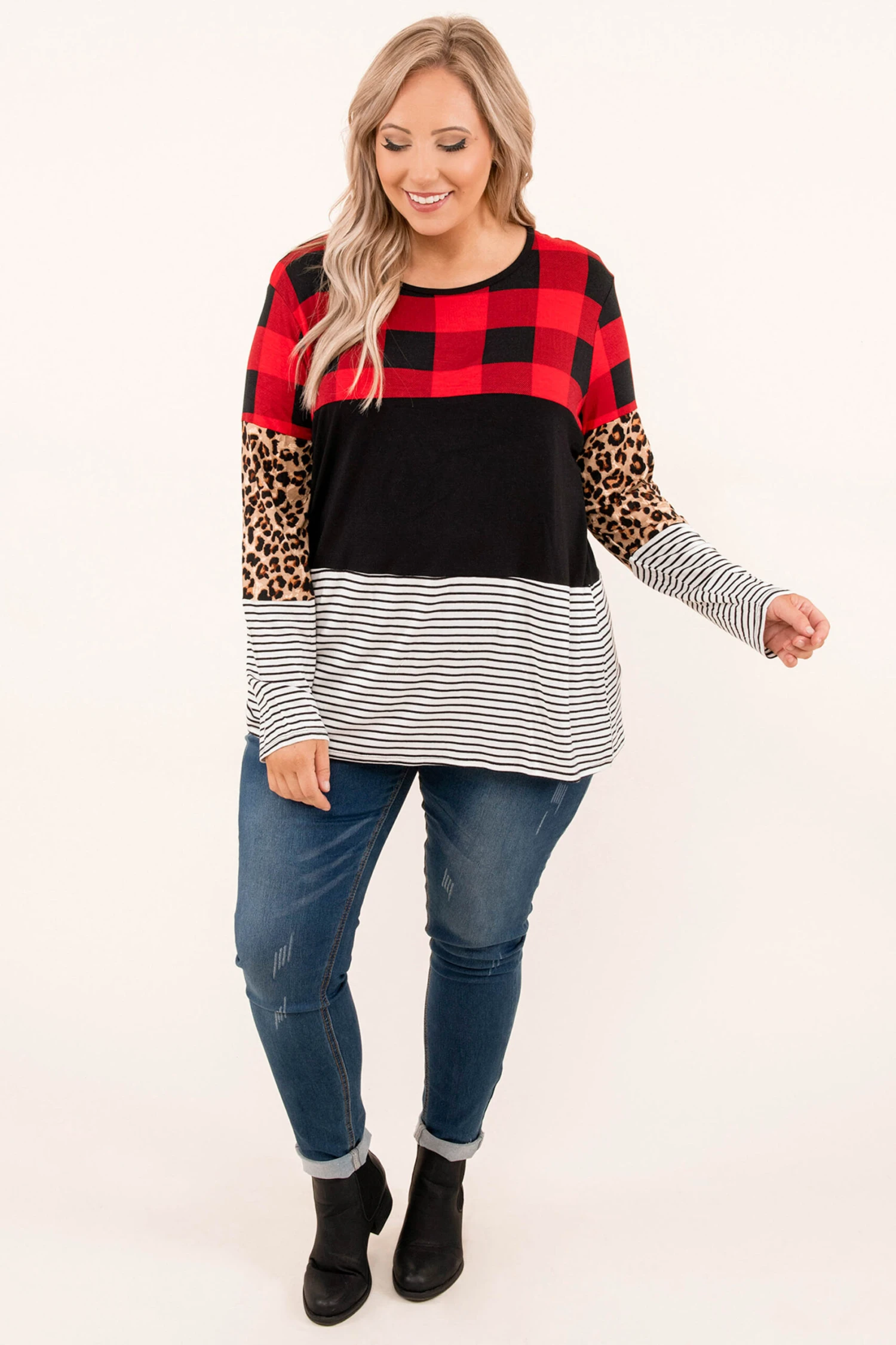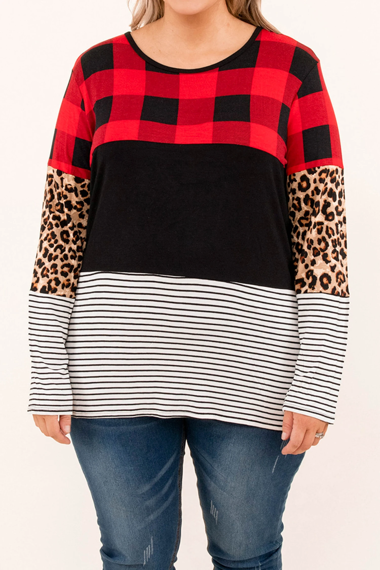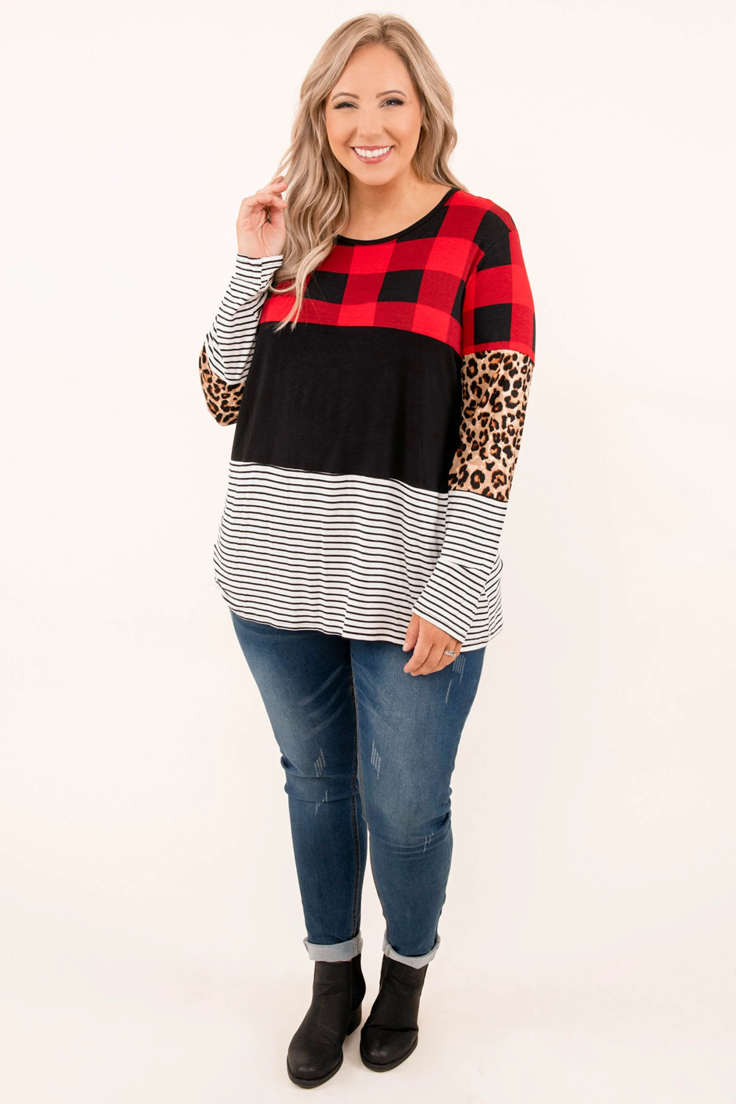 Your mind is made, you need this top! It has a classic plaid print on top with a fun pop of leopard on the sleeves and chic stripes on the bottom. This top is so soft and comfortable making it perfect for all-day wear. Pair this with your favorite jeans and booties for a chic, casual look!