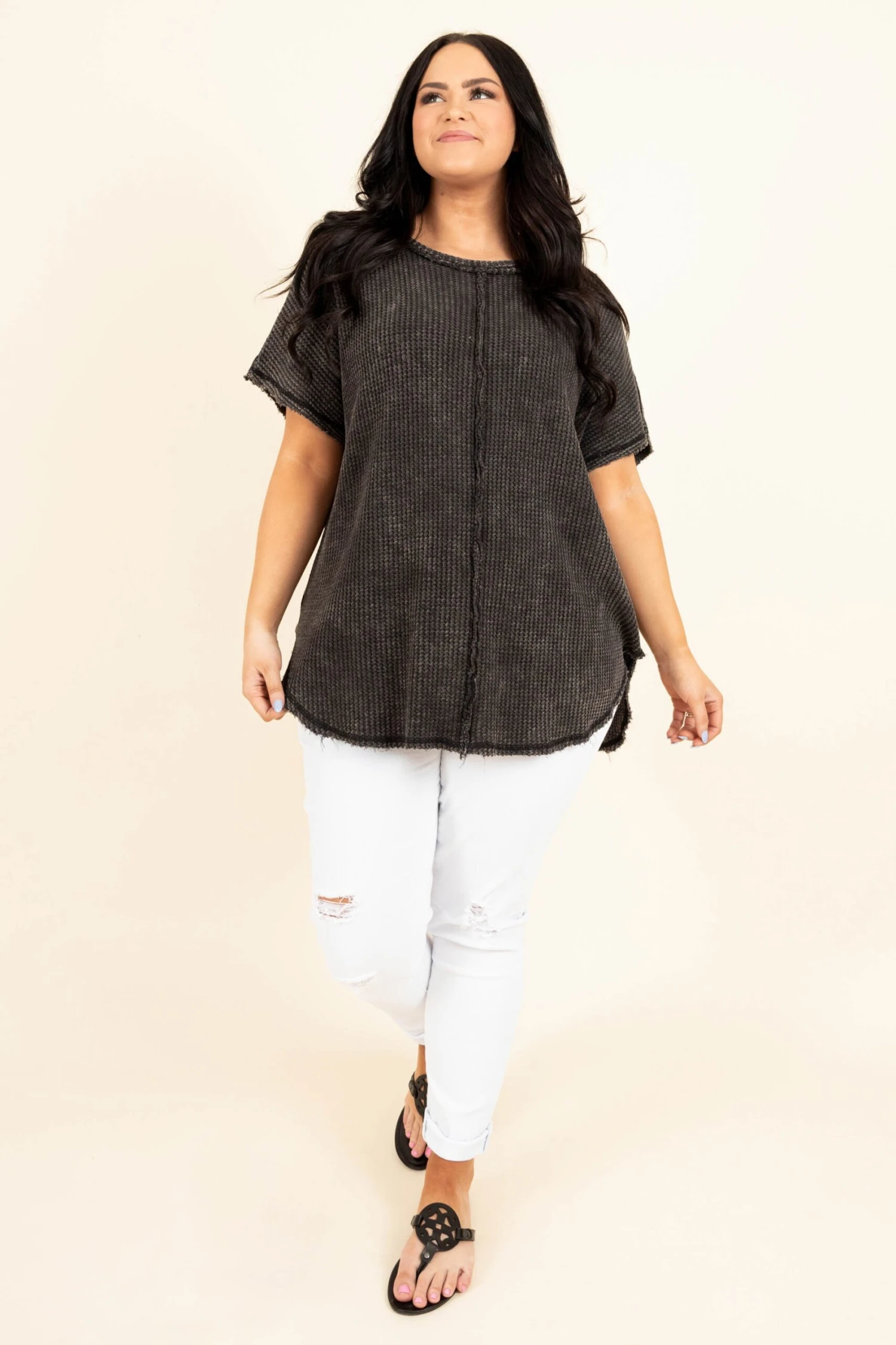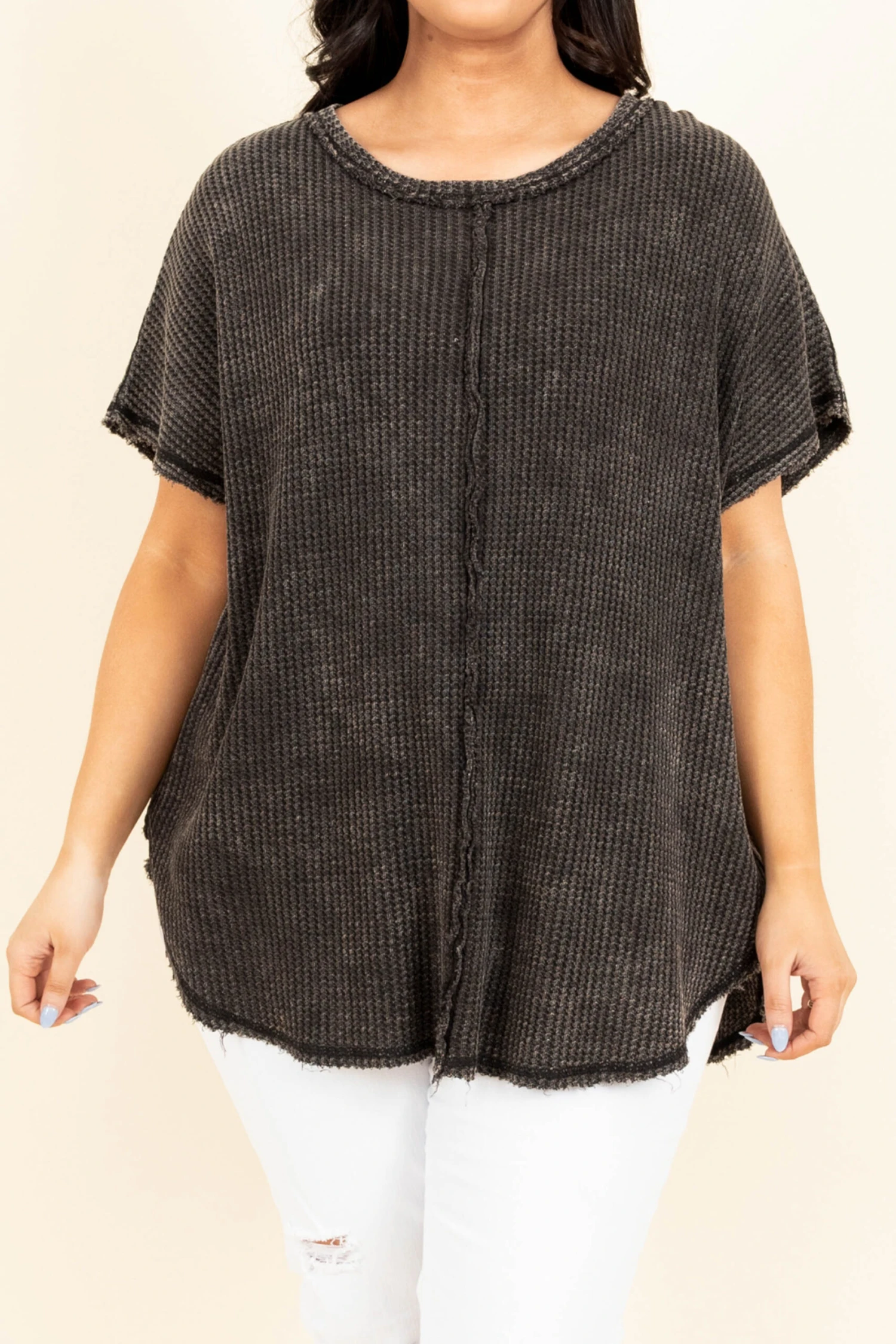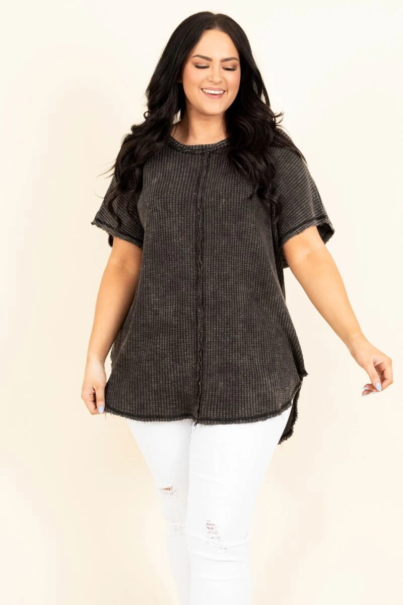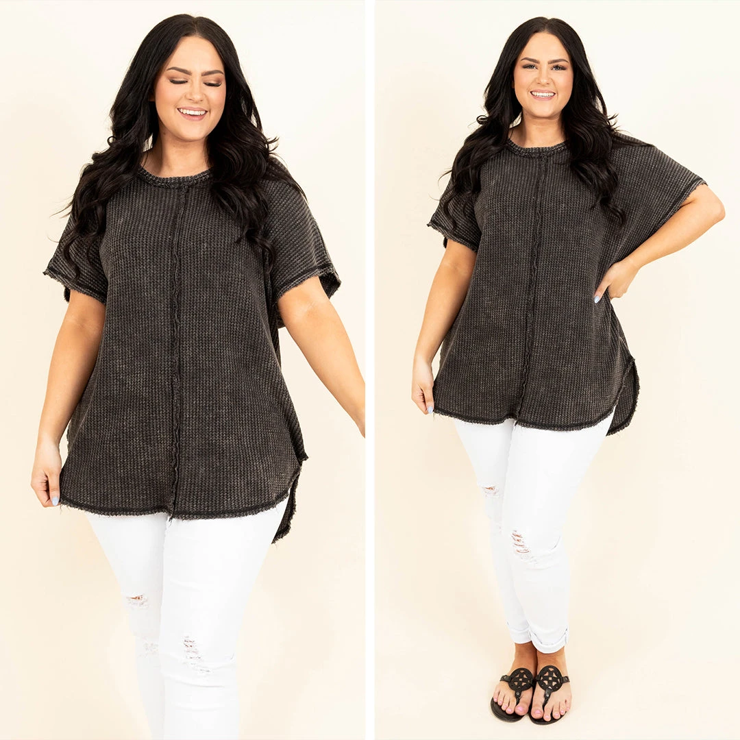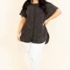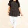 We are weak for this adorable top! It has a lovely ash black color with a super trendy acid wash design that is so chic! The stretchy, figure flattering fit is perfect for all day wear throughout the season! Pair this top with skinnies or leggings for an everyday chic look!