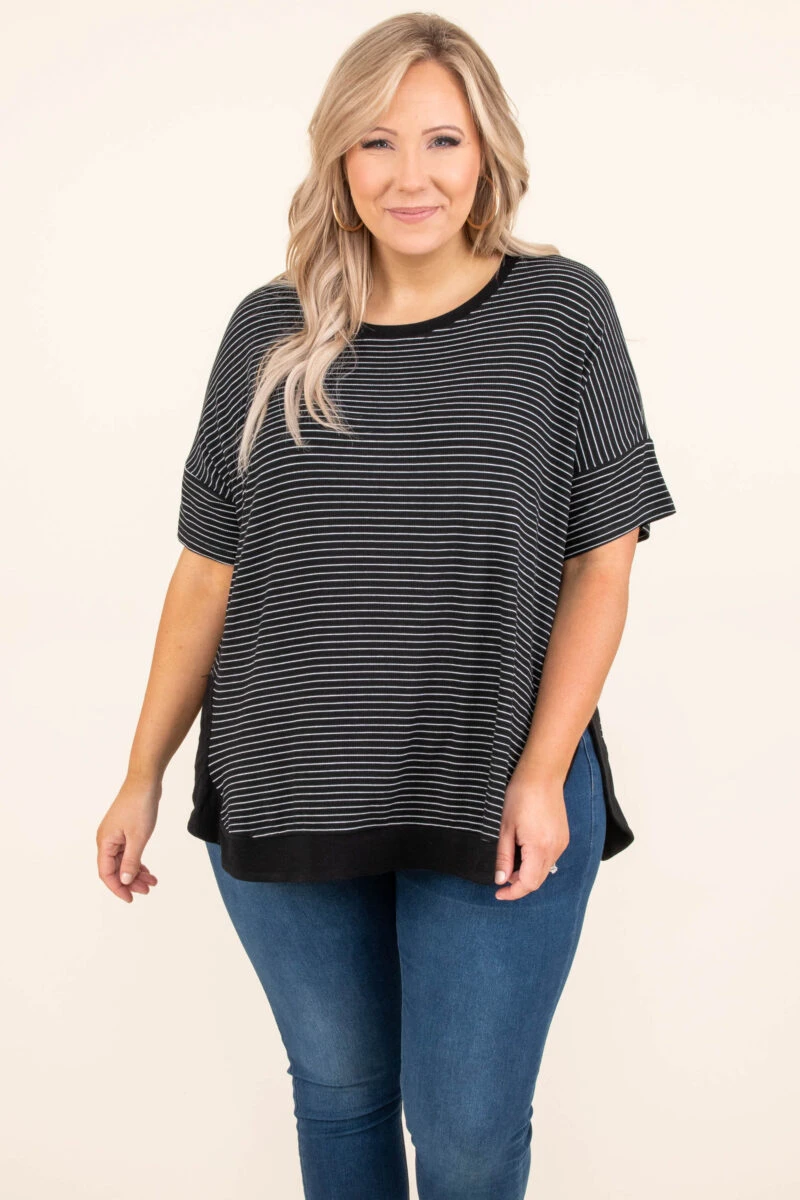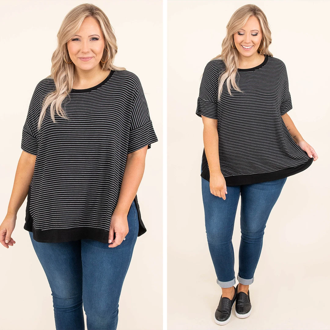 Make some big moves in this amazing top! The ribbed knit material is so comfy you could wear this cutie all day! We love the striped pattern with the solid black at the bottom! Pair this babe with some skinnies and sandals for a chic look!