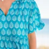 Get ready to make your move in this playful Making My Move Dress! Its blue damask print adds an elegant touch to the fun split v-neck design, complete with tassel details! And with a tiered skirt, you’ll be twirling with joy all day long! Time to show off your unique style!