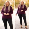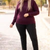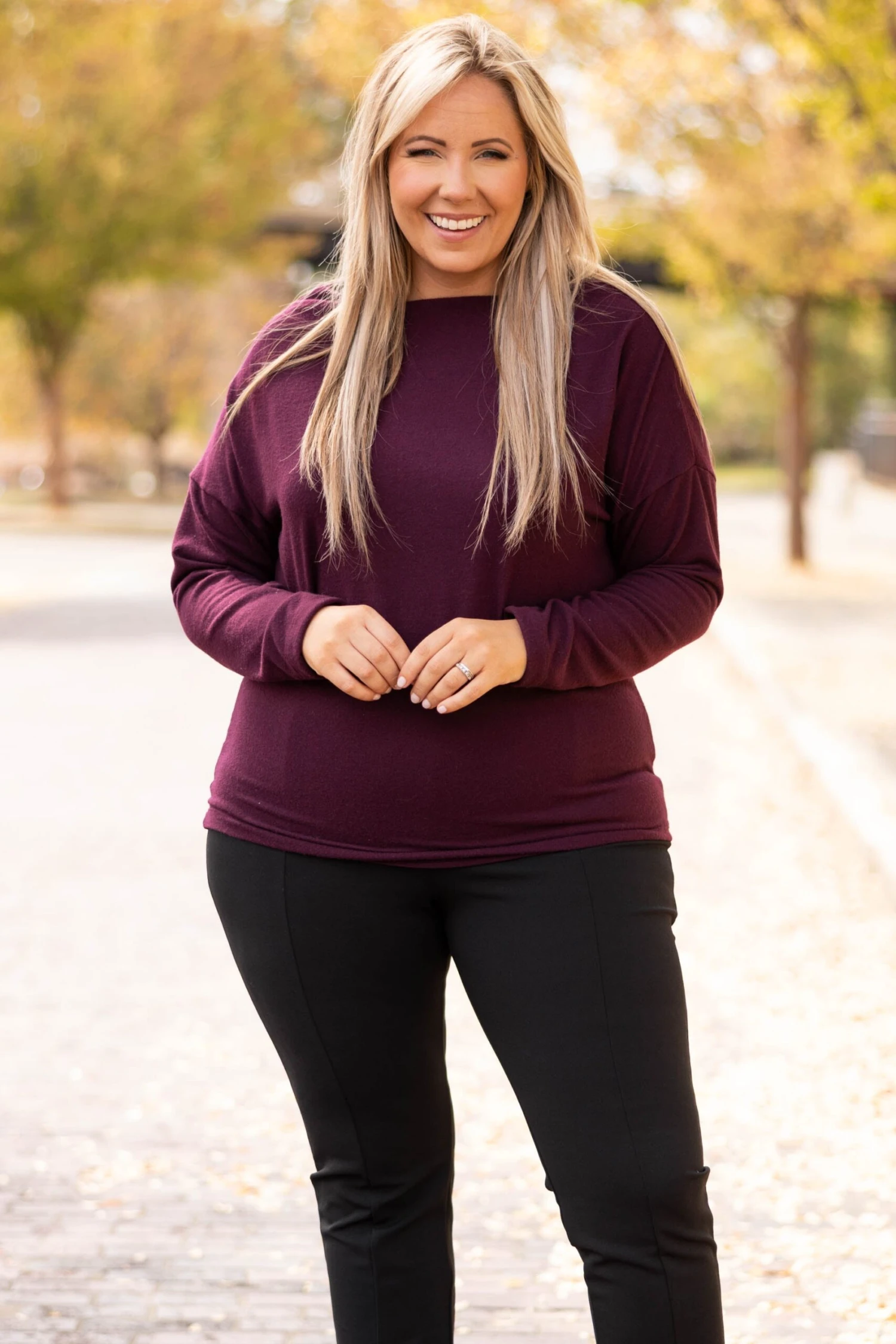 This sweater is a total dream! It has a mesmerizing raisin color with a high neckline and soft material that is perfect for the season! Style this sweater with some cute pants or skinnies for a classic chic look!