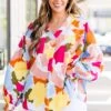This top is as sweet as your favorite song! It features a pretty pink abstract pattern, adding a touch of elegance to any outfit! The bubble sleeves add a fun and unique element, making it perfect for a night out or a day in the office! Elevate your wardrobe with this versatile and chic top!